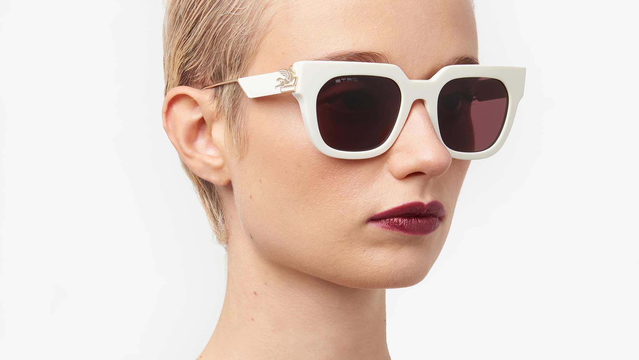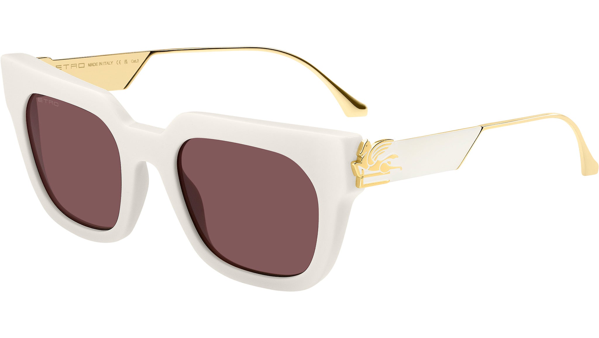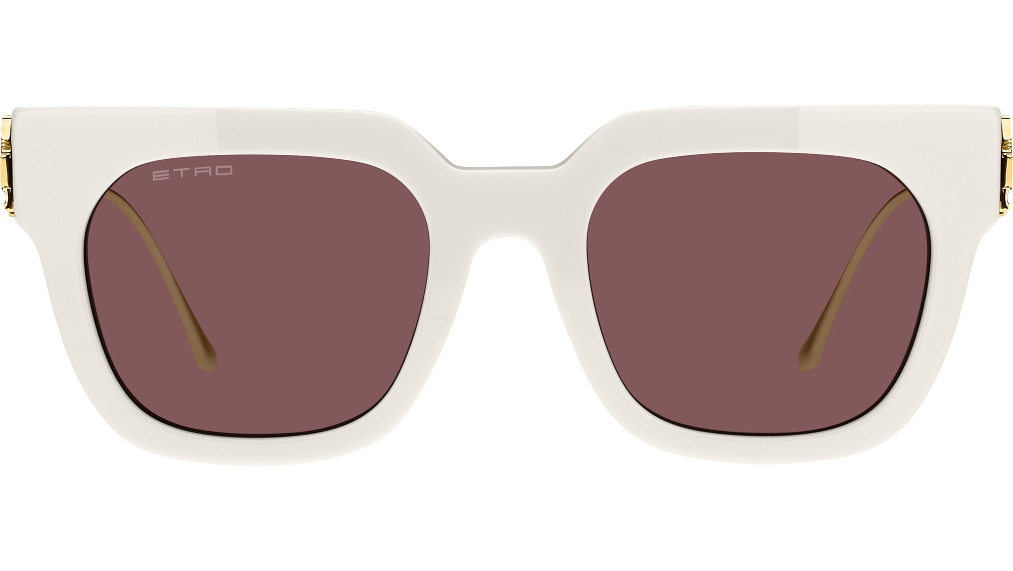 Occhiali da sole ETRO modello 0027/G/S codice colore SZJ U1 in acetato avorio con lenti in CR-39 rosa. Parte della collezione eyewear "Bold Pegaso", questi occhiali da sole da donna ETRO si caratterizzano per la forma unica delle aste, arricchite da dettagli laccati, lucidi come gioielli, e da un'applicazione in metallo tridimensionale del mitico Pegaso, simbolo della casa di moda milanese. La quintessenza dello stile iconico della Maison, questa montatura presenta un frontale dalle linee audaci, con bordi smussati per una maggiore leggerezza e la scritta "ETRO" incisa al laser sulle lenti. Rivenditore autorizzato online Dsquared2.