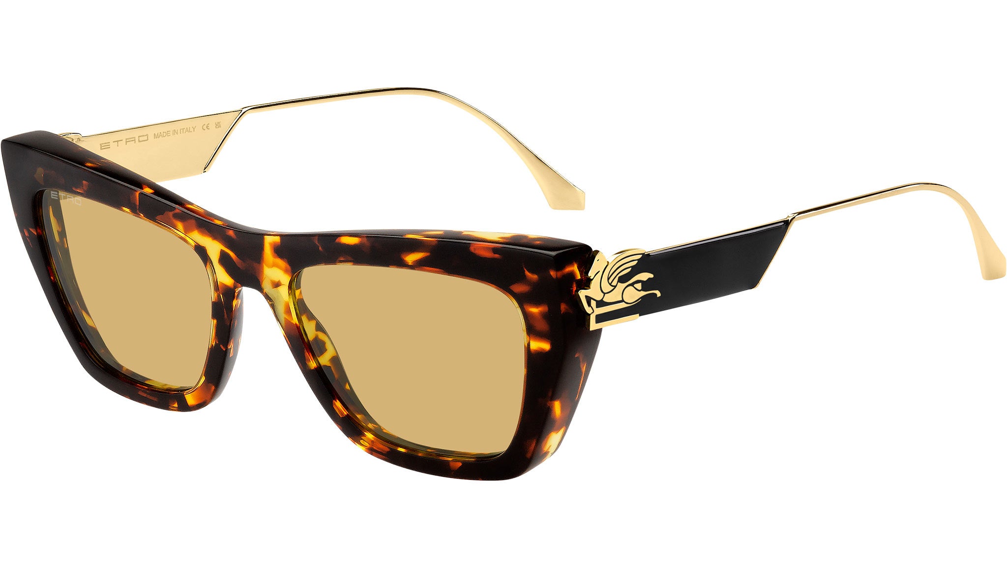 Occhiali da sole ETRO modello 0028/S codice colore 086 HO in acetato avana con lenti in CR-39 giallo. Parte della collezione eyewear "Bold Pegaso", questi occhiali da sole da donna ETRO si caratterizzano per la forma unica delle aste, arricchite da dettagli laccati, lucidi come gioielli, e da un'applicazione in metallo tridimensionale del mitico Pegaso, simbolo della casa di moda milanese. La quintessenza dello stile iconico della Maison, questa montatura presenta un frontale dalle linee audaci, con bordi smussati per una maggiore leggerezza e la scritta "ETRO" incisa al laser sulle lenti. Rivenditore autorizzato online Dsquared2.