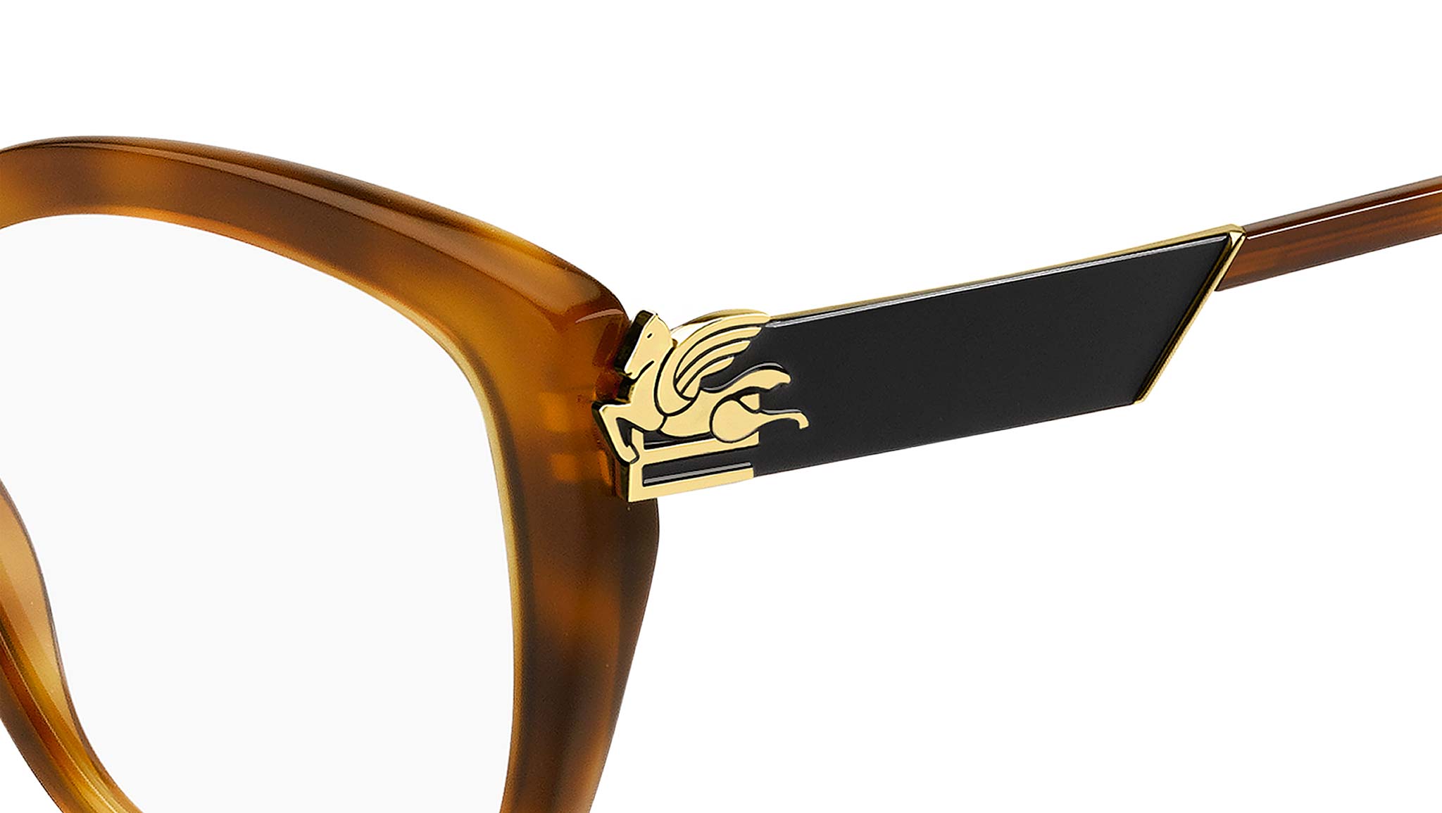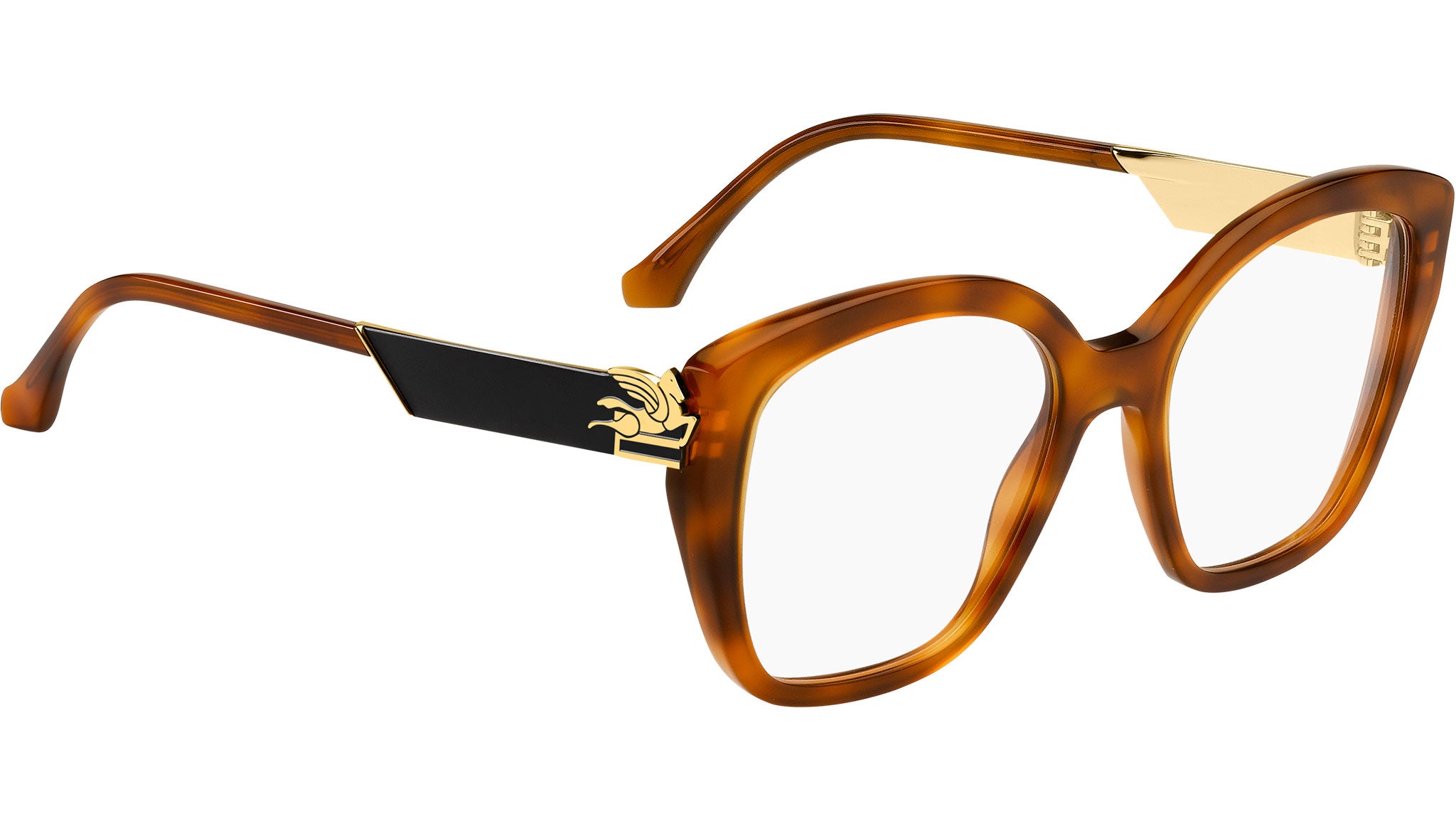 Occhiali da vista ETRO modello 0031 codice colore 05L avana con lenti demo Parte della collezione eyewear "Bold Pegaso", questa montatura da vista da donna richiama l'atmosfera ricercata dei gioielli della Maison con un inserto laccato lucido sulle aste, arricchita da una decorazione in metallo che richiama il mitico Pegaso, simbolo della casa di moda milanese. Leggeri e distintivi, questi occhiali da vista presentano un frontale in acetato e aste con terminali iconici che ricreano la simmetria del logo ETRO. Rivenditore autorizzato online ETRO Eyewear.