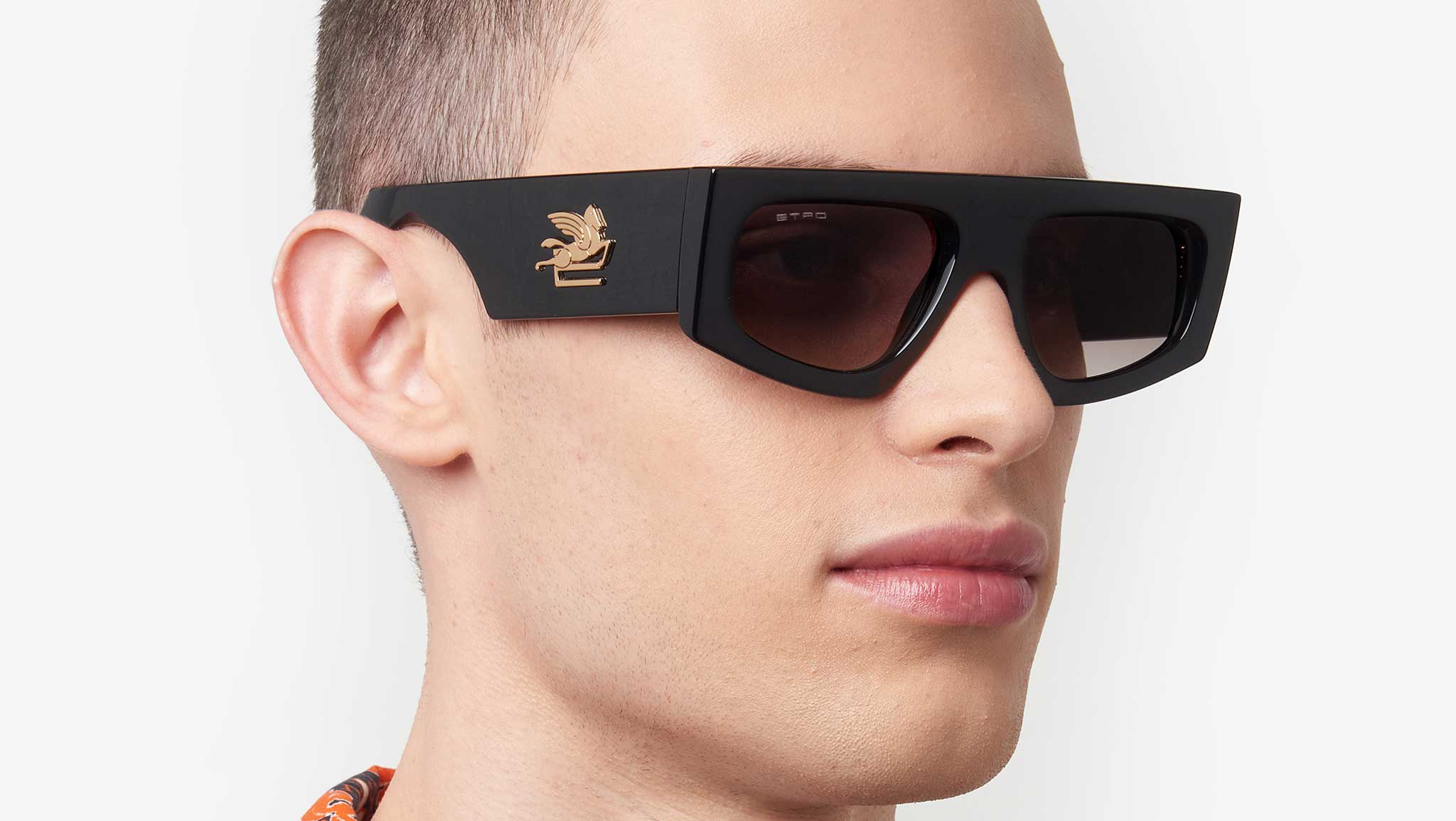 Occhiali da sole ETRO modello 0032/G/S codice colore 807 HA in Injected nero con lenti in CR-39 marrone sfumato. La collezione di occhiali "Etroscreen" richiama l'eleganza distintiva della fashion house ETRO attraverso un design originale, dal forte impatto visivo. I volumi decisi di questi occhiali da sole genderless sono esaltati dall'abbinamento monocromatico della montatura e delle lenti. Elementi heritage sottolineano l'unicità della montatura: le aste dalla forma ampia e geometrica sono rifinite con il logo Pegaso dorato o tono su tono, mentre i terminali richiamano le linee simmetriche del logo del ETRO. Il tocco finale è il nome del brand inciso al laser sulle lenti. Rivenditore autorizzato online Dsquared2.