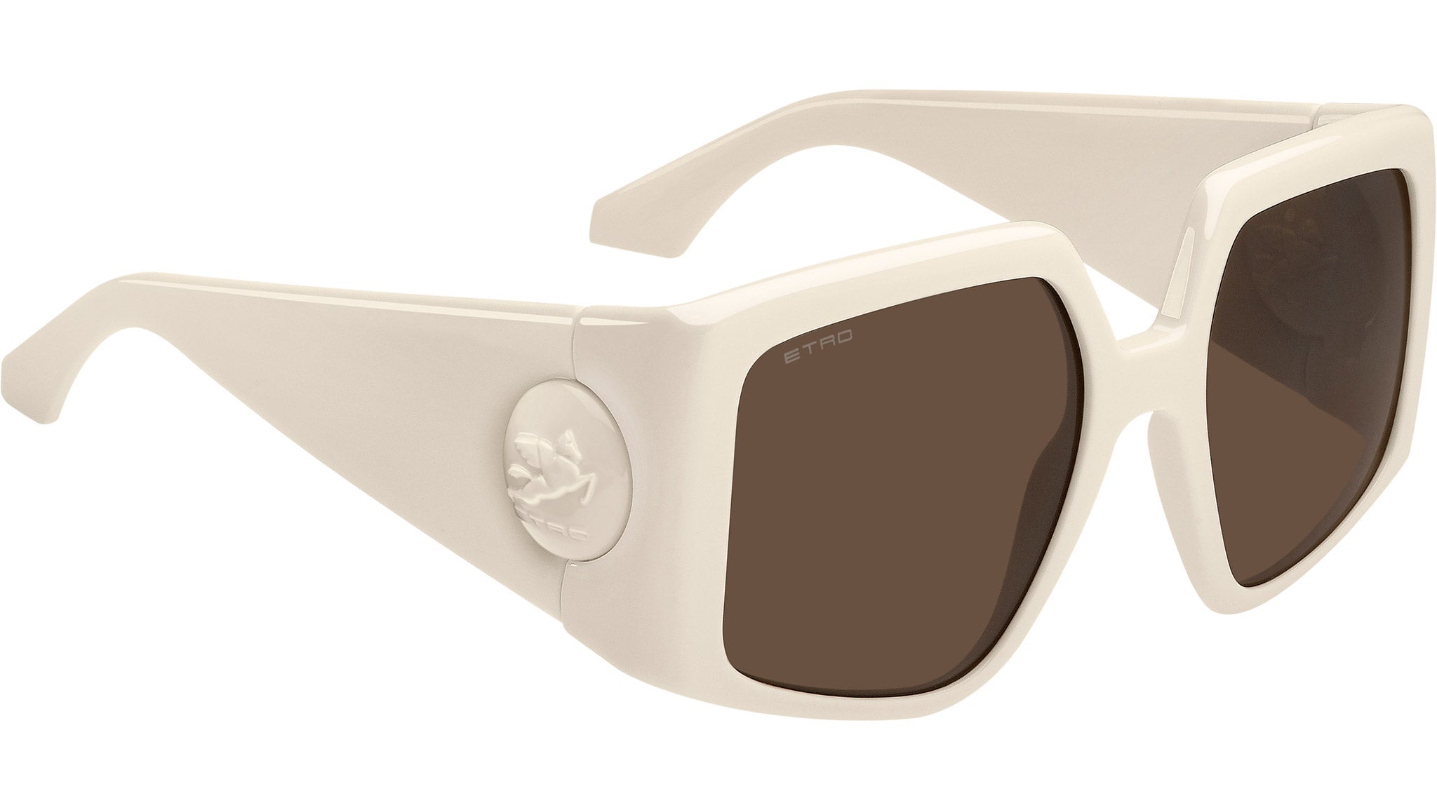 Occhiali da sole ETRO modello 0038/S codice colore SZJ 2M in Injected avorio con lenti in CR-39 marrone antiriflesso. Questi occhiali da sole da donna incarnano l'eleganza unica di ETRO: una fusione di linee grafiche, dettagli heritage e innovazione tecnica. Inconfondibili e audaci, le montature presentano una forma geometrica squadrata e oversize, completata da distintive aste triangolari. Il logo Pegaso a rilievo, realizzato senza parti metalliche, nasconde una innovativa cerniera integrata: una decorazione emblematica che fonde estetica e funzionalità. Le rifiniture riflettono la cura del brand per ogni minimo dettaglio, dagli iconici terminali ispirati alla simmetria del logo alla scritta "ETRO" incisa al laser sulla lente colorata. Rivenditore autorizzato online Dsquared2.