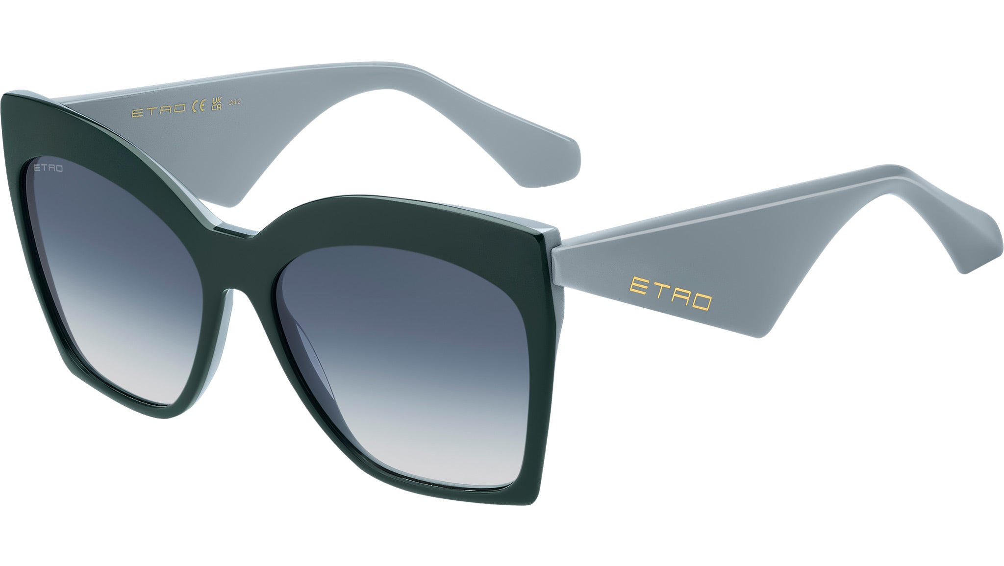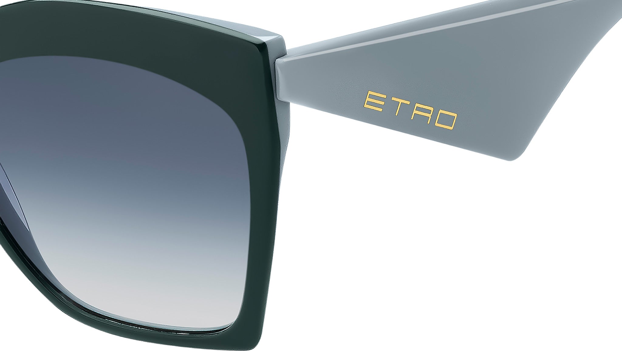 Occhiali da sole Etro 0044/S 3UK 08 donna con montatura rettangolare in acetato verde blu e lenti in CR-39 blu scuro sfumato. Linea: Tailoring. Codice modello: 207303. Codice colore: 3UK 08. Rivenditore autorizzato Etro online. Gli occhiali vengono consegnati con custodia e accessori originali e sono coperti dalla garanzia ufficiale di 12 mesi del produttore.