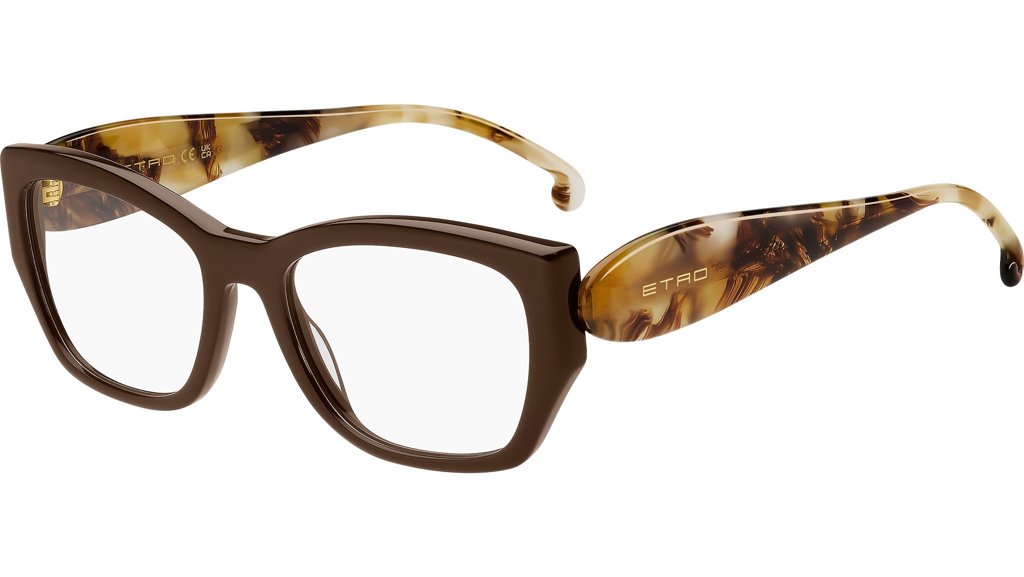 Occhiali da vista Etro 0058 09Q donna con montatura rettangolare in acetato marrone e lenti demo. La linea eyewear "Etropaisley" interpreta il classico motivo Paisley in una inaspettata chiave grafica. Questi occhiali da vista in acetato richiamano l'eleganza opulenta ed eclettica di ETRO attraverso volumi audaci, forme geometriche e una palette di colori sofisticata. La montatura, apparentemente semplice ed essenziale, si distingue per le aste dal design unico, ispirato alle linee iconiche del Paisley. Il logo metallico su entrambi i lati completa il modello con un tocco di eleganza minimale. Linea: Etromania. Codice modello: 108772. Codice colore: 09Q. Rivenditore autorizzato Etro online. Gli occhiali vengono consegnati con custodia e accessori originali e sono coperti dalla garanzia ufficiale di 12 mesi del produttore.