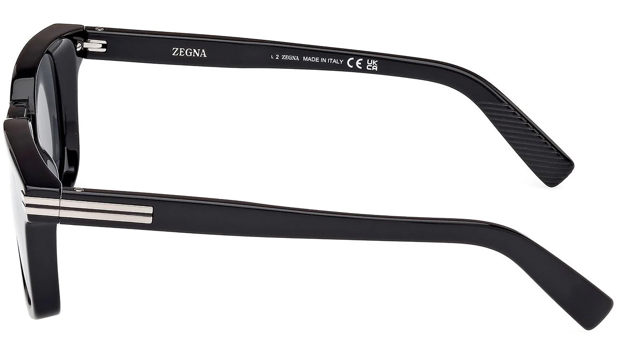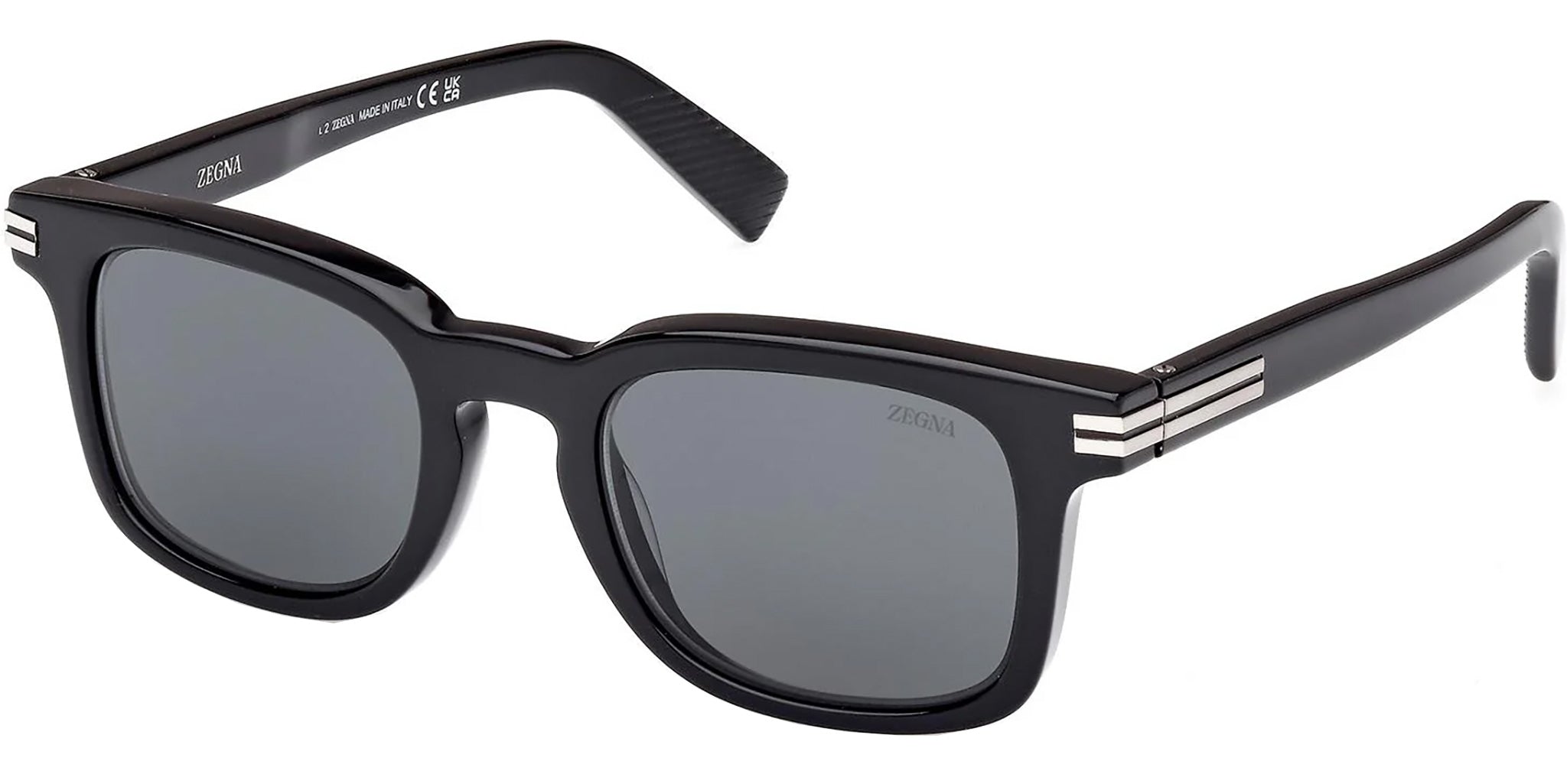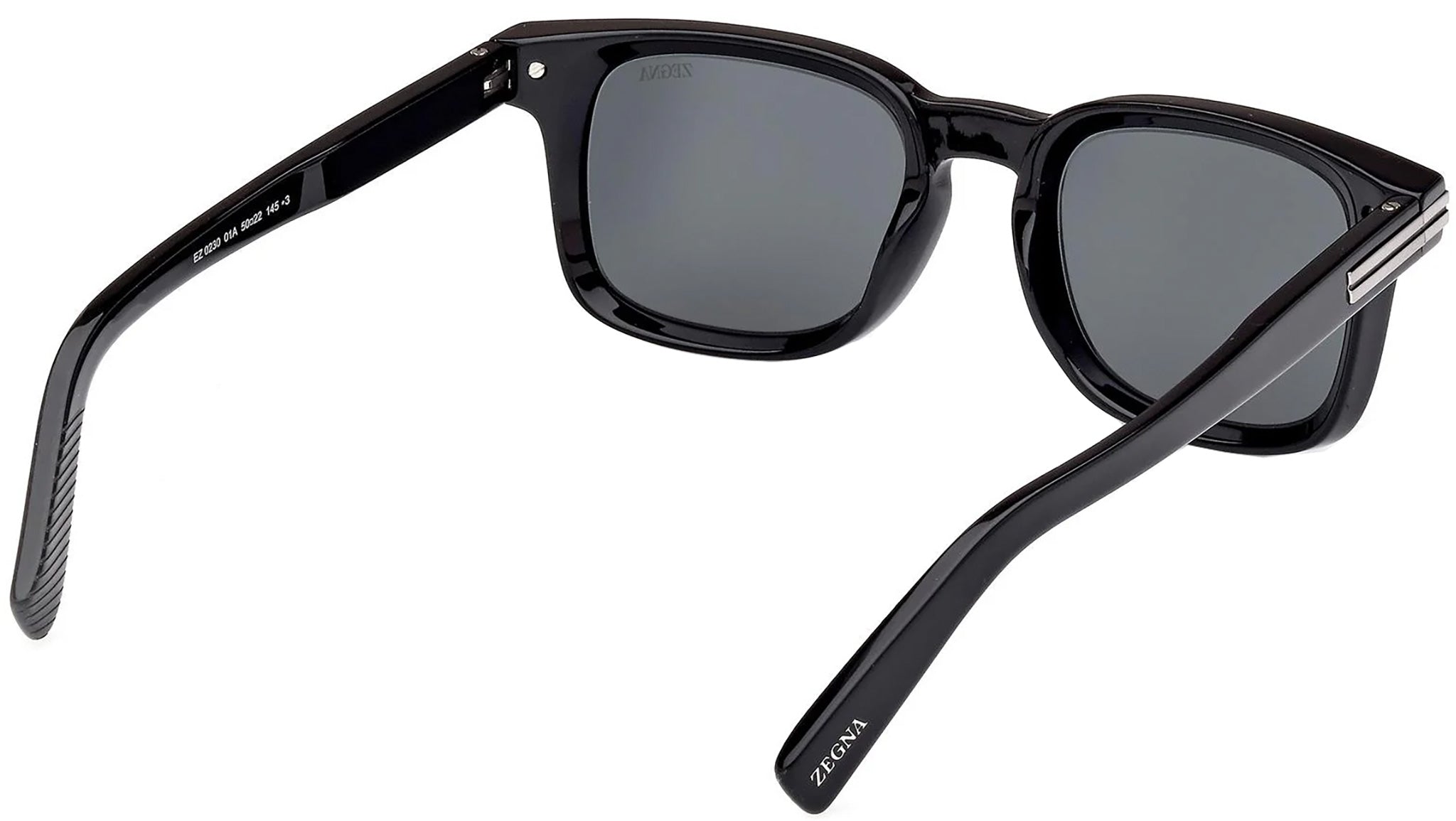 Occhiali da sole Zegna uomo modello EZ0230 con montatura nero lucido full-rim in acetato e lenti color grigio fumo. Codice Brand: EZ0230. Codice colore: 01A. Rivenditore autorizzato Ermenegildo Zegna online. Gli occhiali vengono consegnati con custodia e accessori originali e sono coperti da garanzia standard di 12 mesi del produttore.