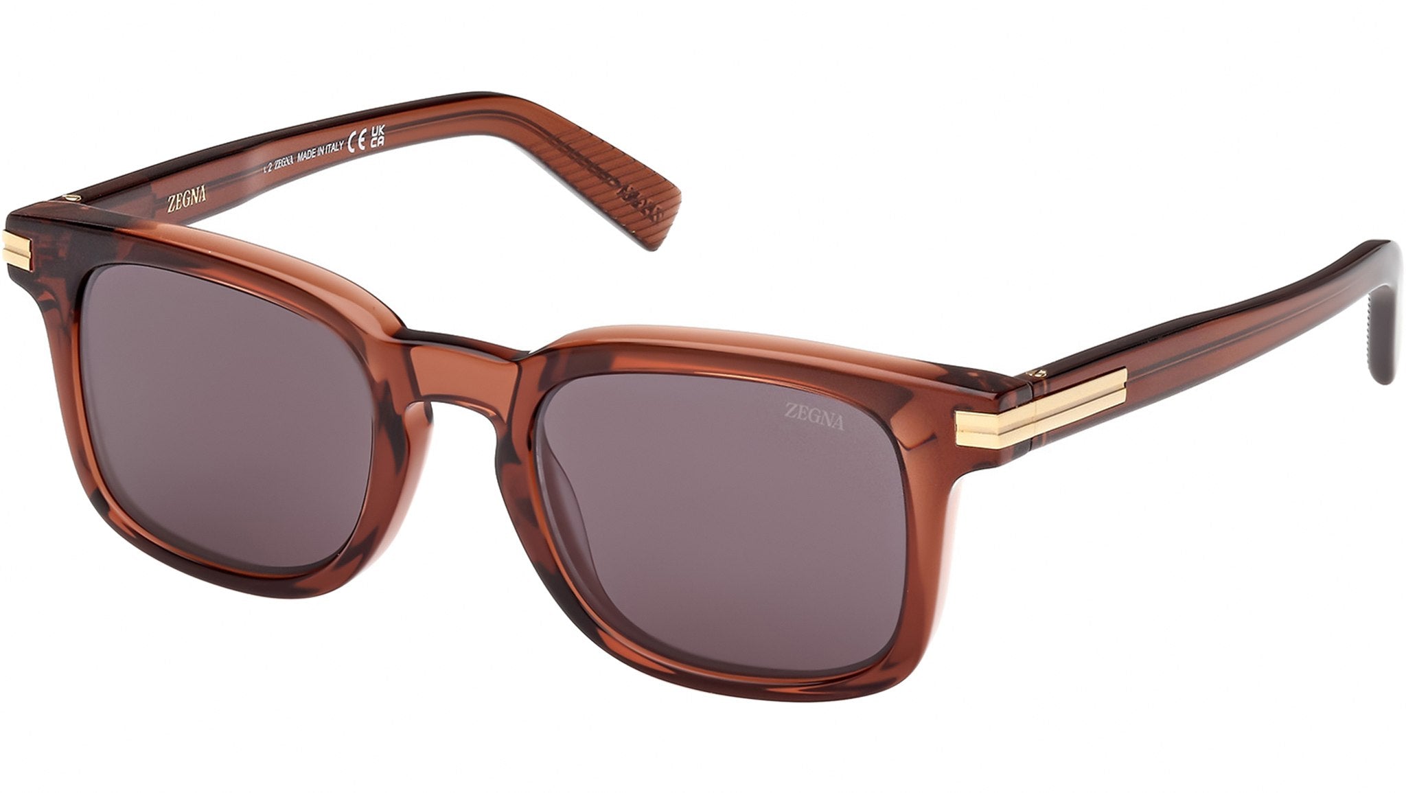 Occhiali da sole Zegna uomo modello EZ0230 con montatura marrone scuro lucido full-rim in acetato e lenti color grigio fumo. Codice Brand: EZ0230. Codice colore: 50A. Rivenditore autorizzato Ermenegildo Zegna online. Gli occhiali vengono consegnati con custodia e accessori originali e sono coperti da garanzia standard di 12 mesi del produttore.