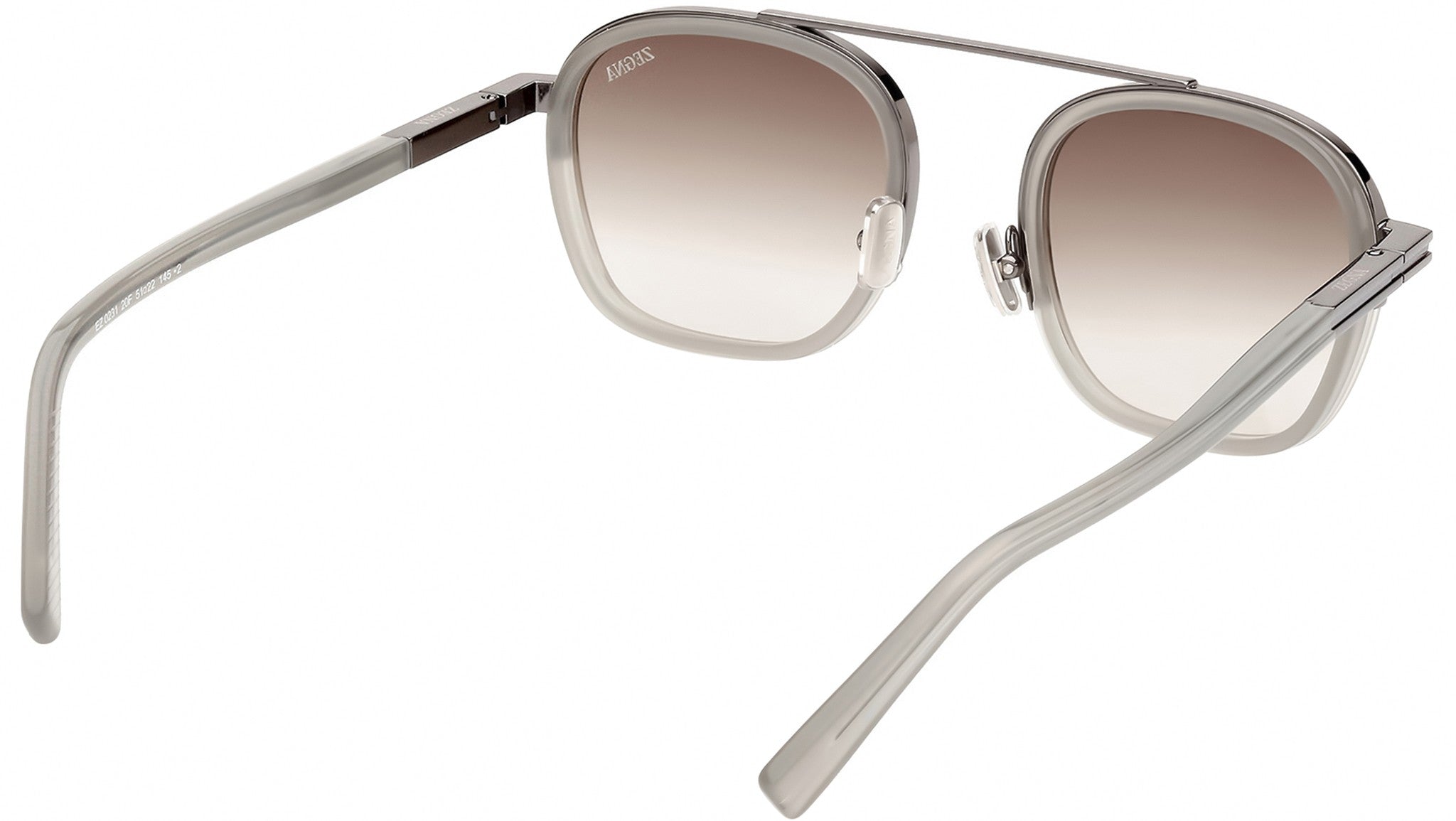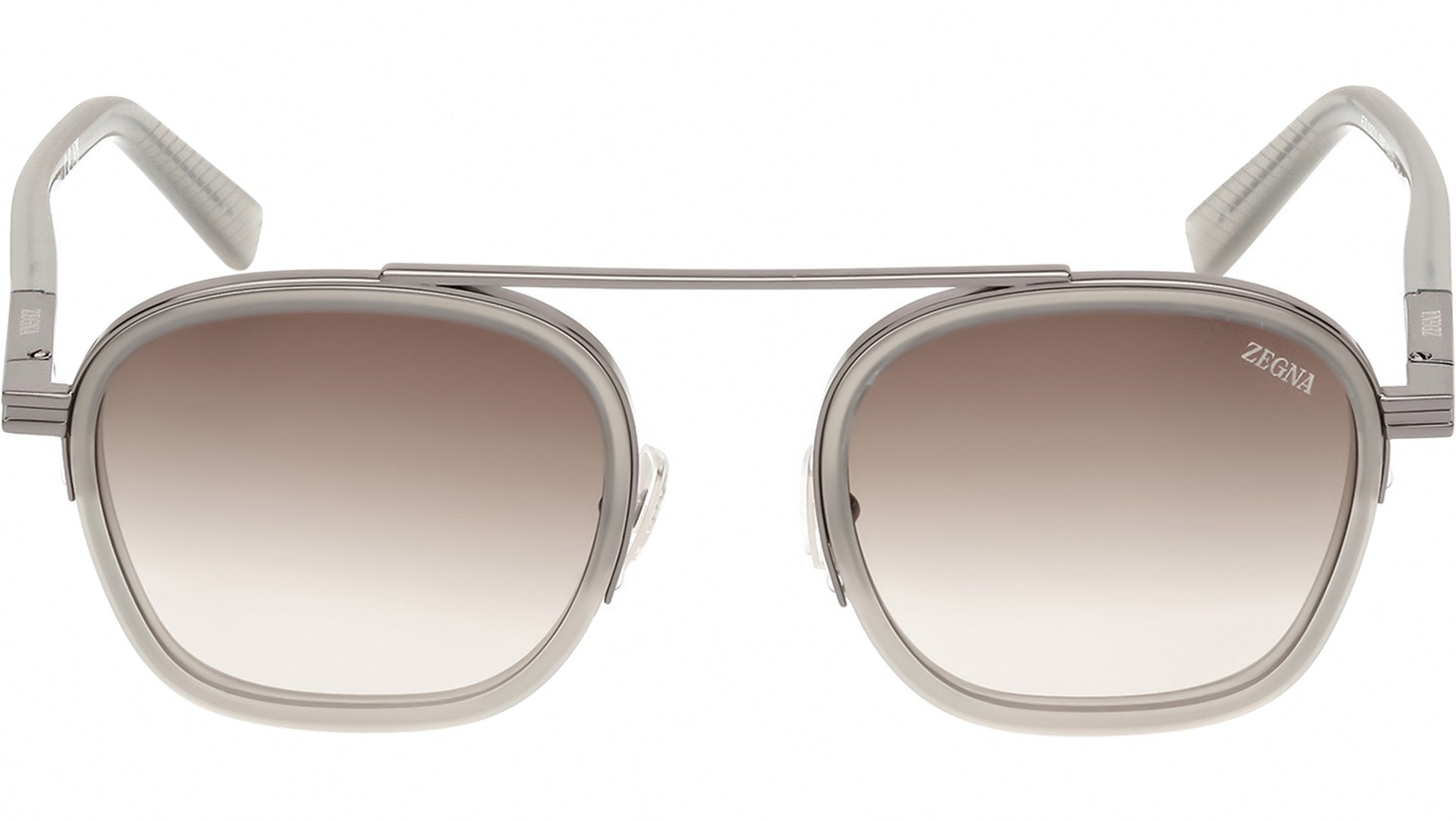 Occhiali da sole Zegna uomo modello EZ0231 con montatura grigio lucido full-rim in metallo e lenti color marrone sfumato. Codice Brand: EZ0231. Codice colore: 20F. Rivenditore autorizzato Ermenegildo Zegna online. Gli occhiali vengono consegnati con custodia e accessori originali e sono coperti da garanzia standard di 12 mesi del produttore.