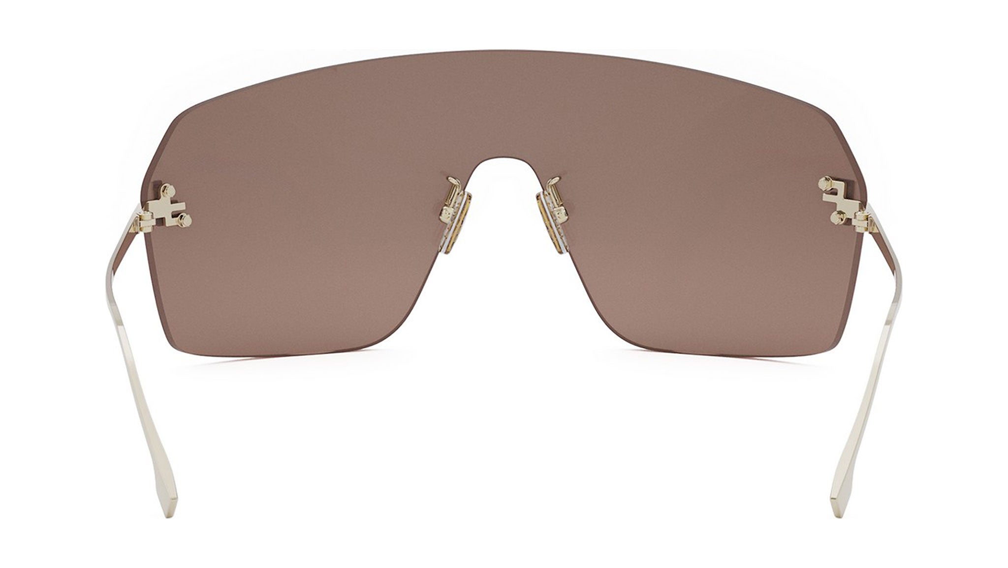 Occhiali da sole FENDI donna linea Fendi First modello FE4121US codice colore 32E oro chiaro. Evoluzione in metallo per la linea Fendi First. La prima forma a mascherina della famiglia, che completa le due forme senza montatura precedenti. I preziosi loghi “F” sul frontale della mascherina sono arricchiti con cristalli. Rivenditore autorizzato FENDI online. Gli occhiali vengono consegnati con custodia e accessori originali.