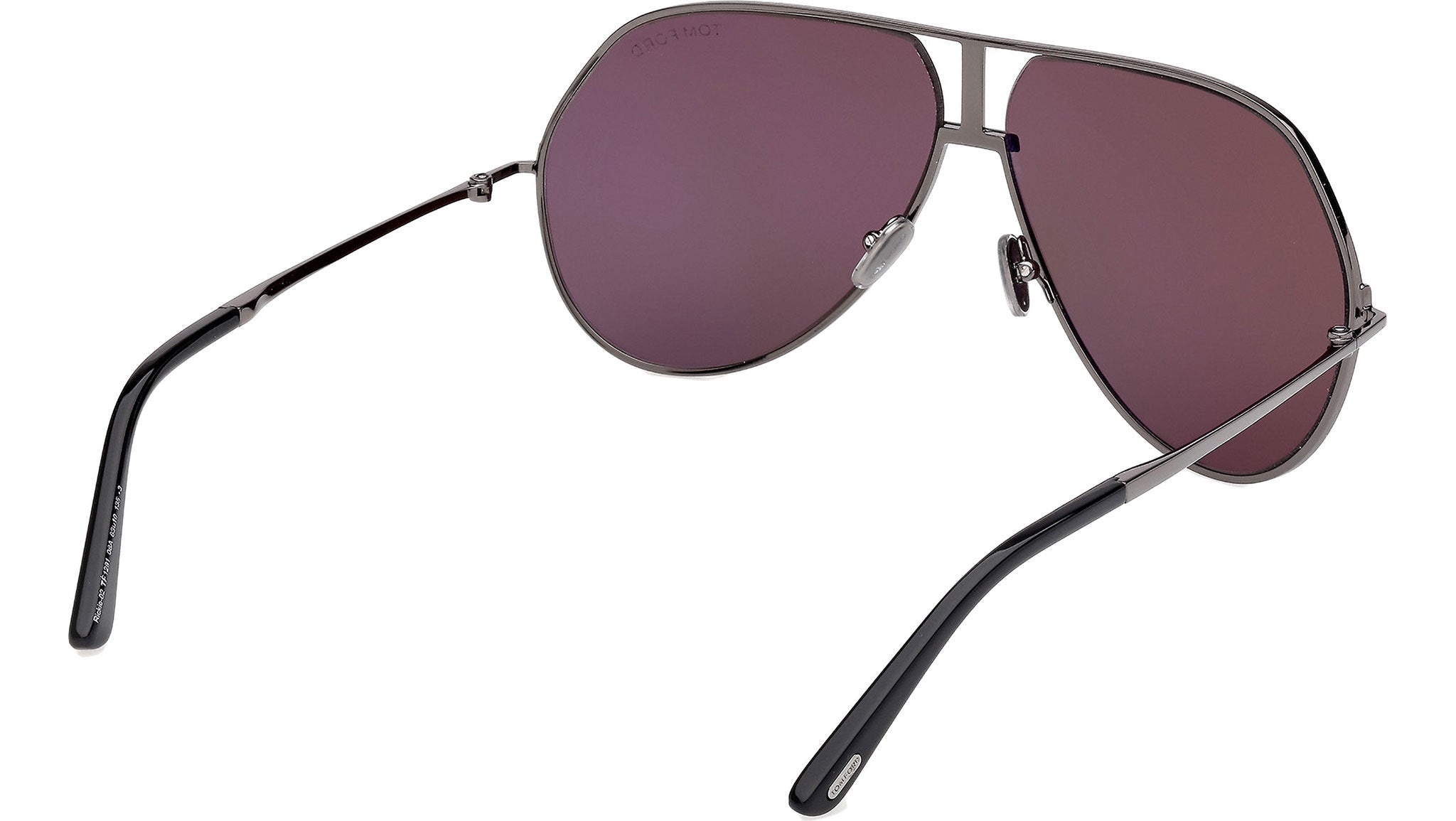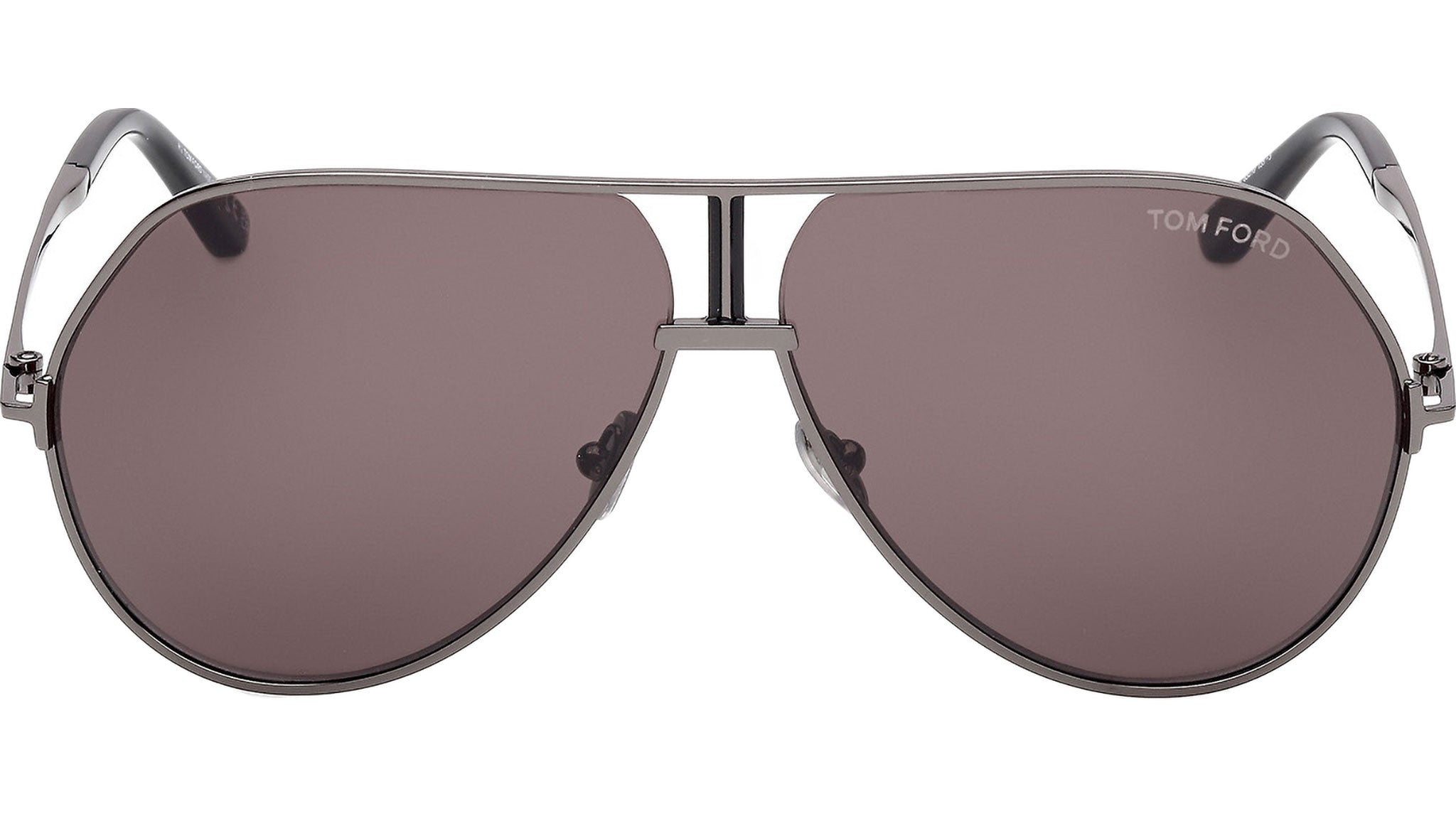 Occhiali da sole Tom Ford uomo modello Rickie-02 FT1281 con montatura navigator full-rim in metallo canna di fucile e lenti color grigio fumo. Codice Brand: 1281. Codice colore: 08A. Rivenditore autorizzato Tom Ford online. Gli occhiali vengono consegnati con custodia e accessori originali e sono coperti da garanzia standard di 12 mesi del produttore.