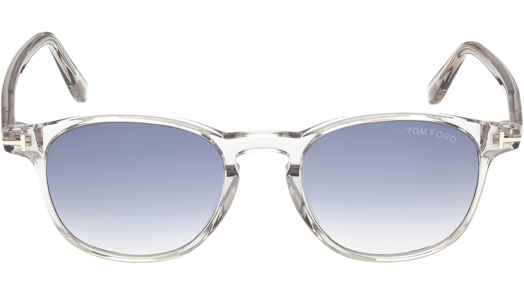 Occhiali da sole Tom Ford uomo modello Holt-02 FT1302 con montatura rotonda full-rim in acetato grigio lucido e lenti color blu sfumato. Codice Brand: 1302. Codice colore: 20W. Rivenditore autorizzato Tom Ford online. Gli occhiali vengono consegnati con custodia e accessori originali e sono coperti da garanzia standard di 12 mesi del produttore.