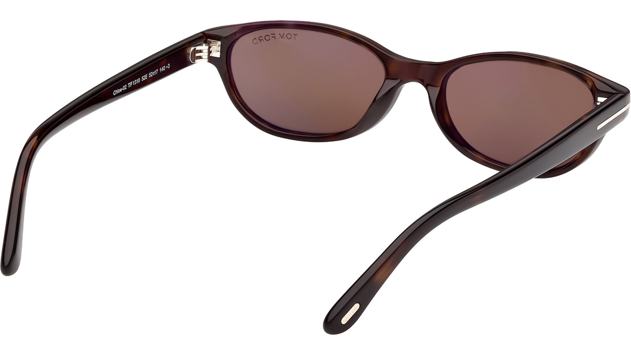Occhiali da sole Tom Ford donna modello Chloe-02 FT1310 con montatura ovale full-rim in acetato avana scuro e lenti color marrone. Codice Brand: 1310. Codice colore: 52E. Rivenditore autorizzato Tom Ford online. Gli occhiali vengono consegnati con custodia e accessori originali e sono coperti da garanzia standard di 12 mesi del produttore.