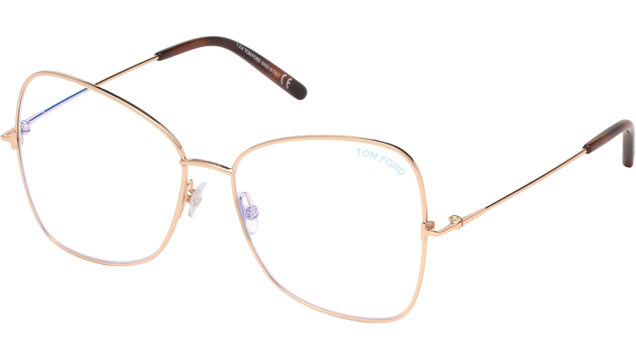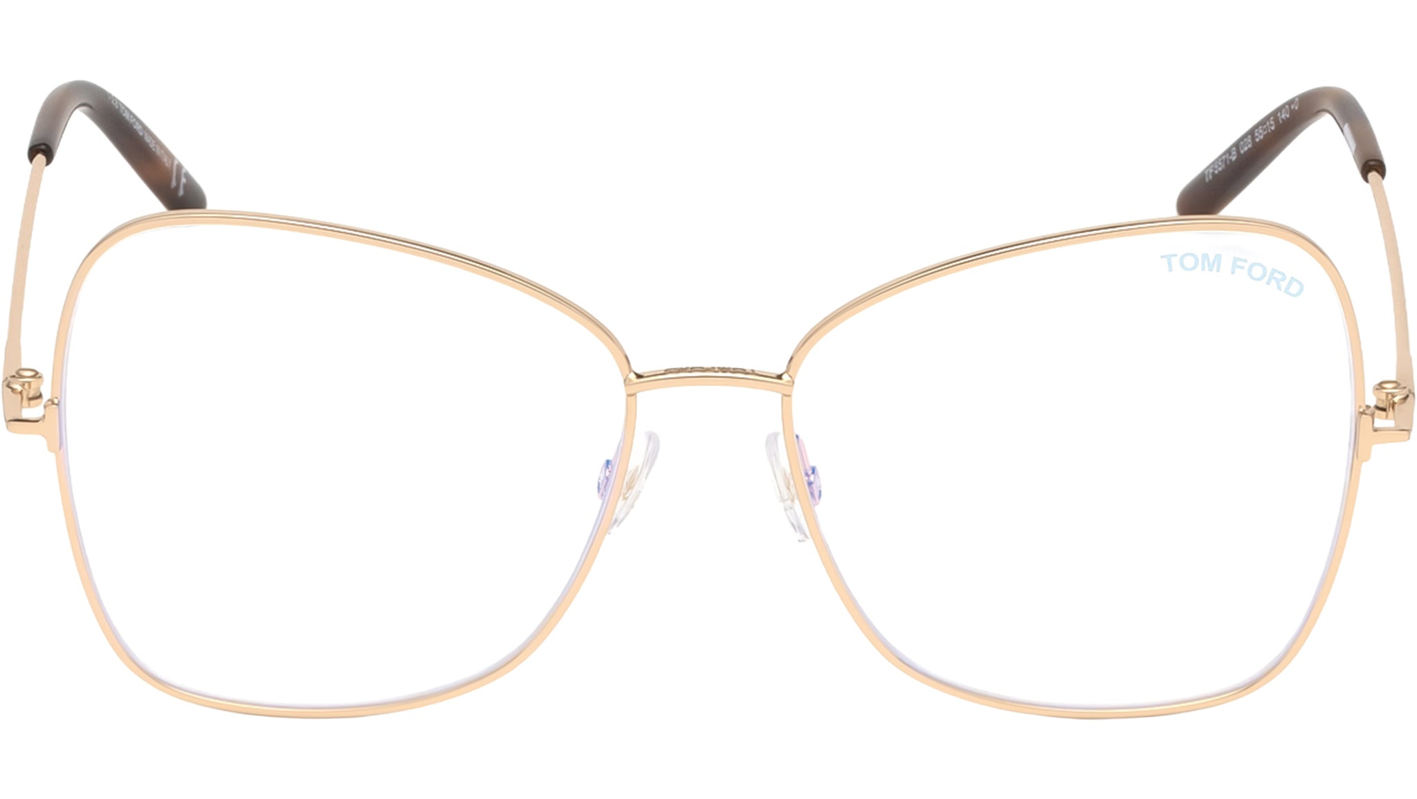 Occhiali da vista Tom Ford donna modello FT5571-B con montatura a farfalla full-rim oro lucido in metallo e lenti demo. Codice Brand: 5571-B. Codice colore: 028. Rivenditore autorizzato Tom Ford online. Gli occhiali vengono consegnati con custodia e accessori originali e sono coperti da garanzia standard di 12 mesi del produttore.