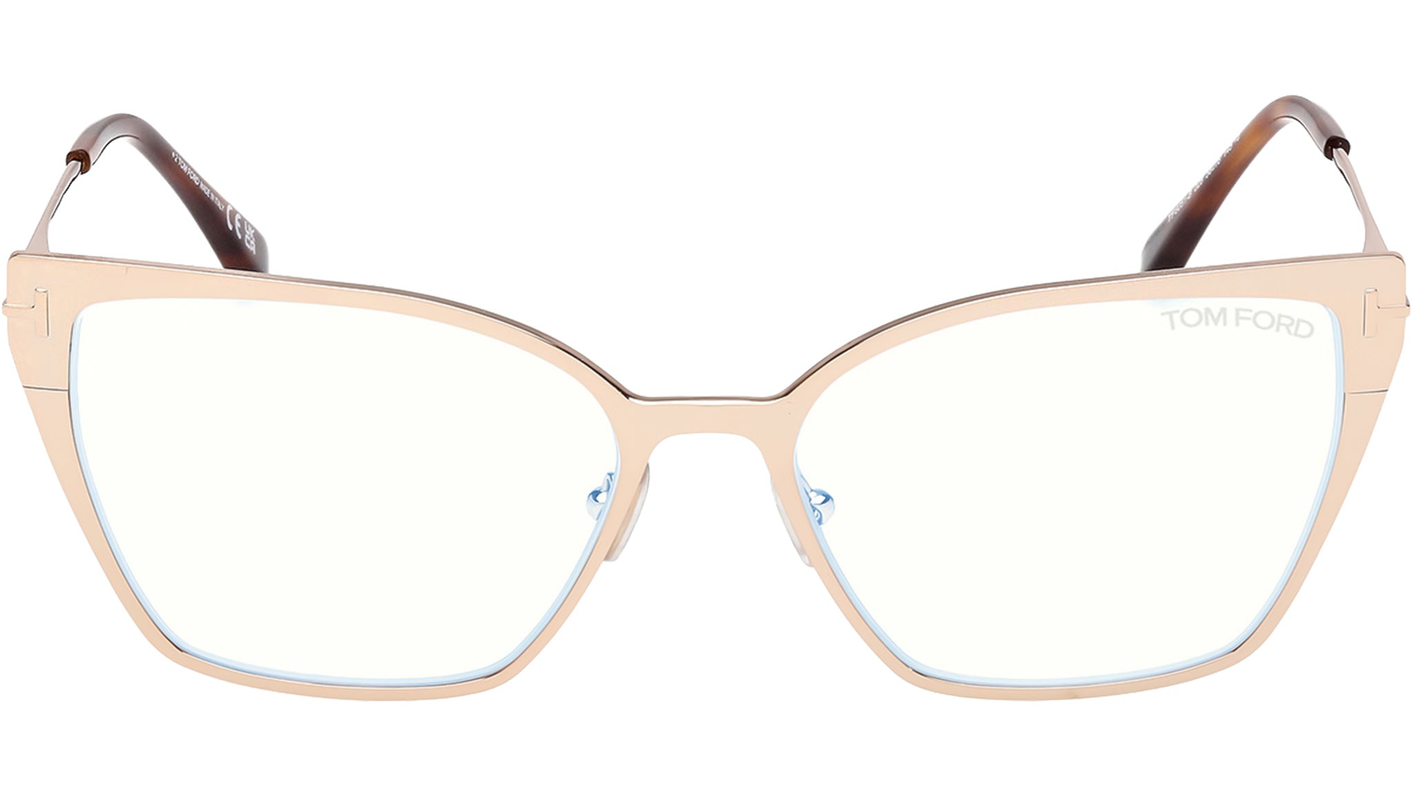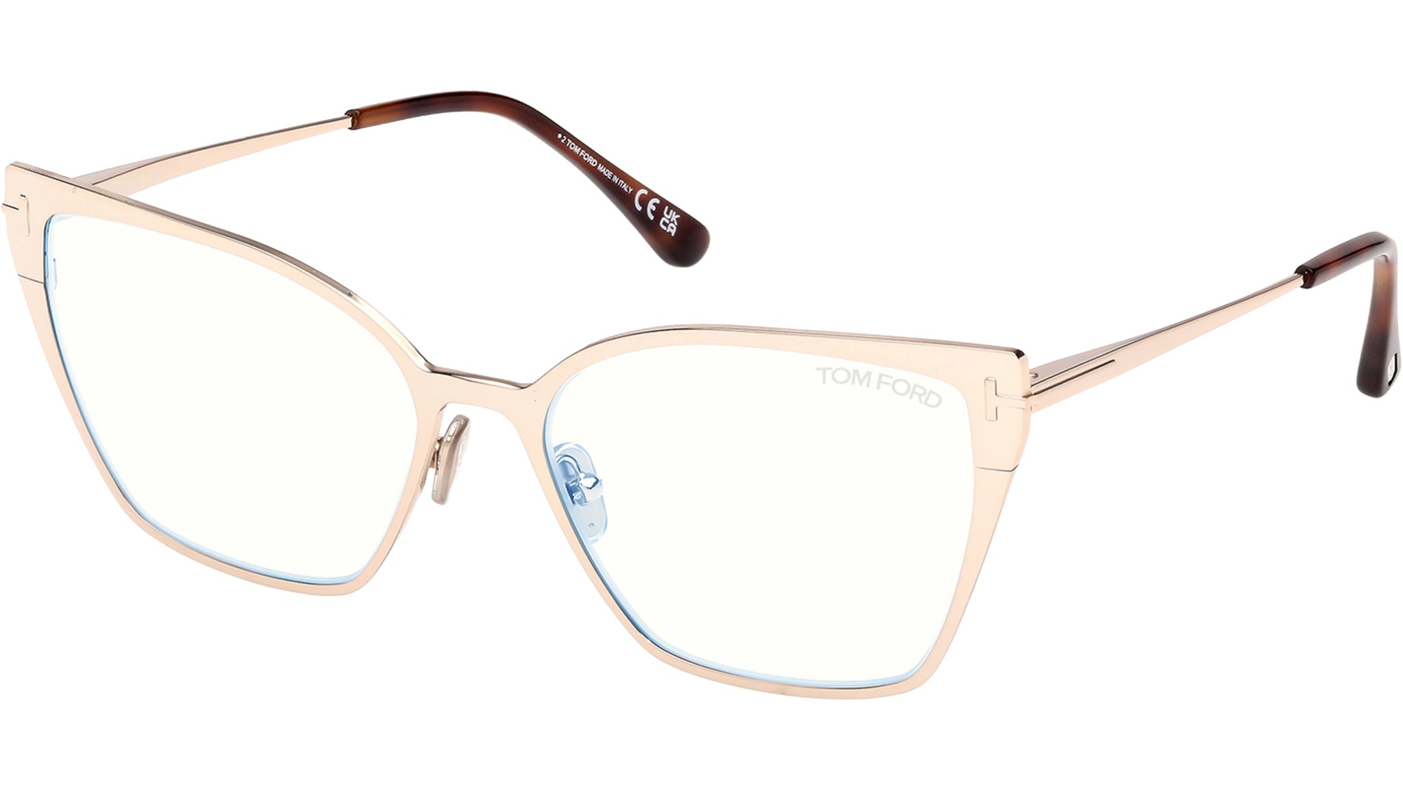 Occhiali da vista Tom Ford donna modello FT6051-B con montatura a farfalla full-rim oro rosa lucido in metallo e lenti demo. Codice Brand: 6051-B. Codice colore: 028. Rivenditore autorizzato Tom Ford online. Gli occhiali vengono consegnati con custodia e accessori originali e sono coperti da garanzia standard di 12 mesi del produttore.