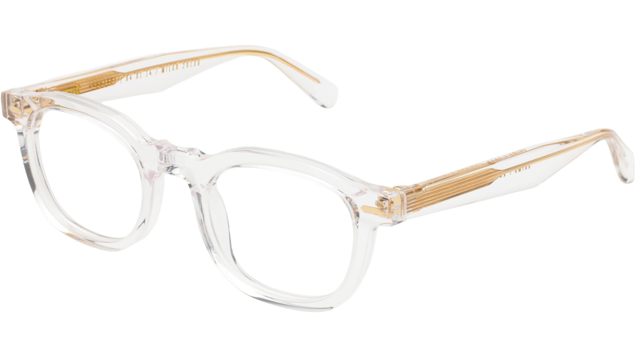 Gast ANIMA Crystal Handmade acetate frame in crystal color with demo lenses – Prescription ready. Five barrels metal hinges and custom wire core. Premium hard case and microfiber cleaning cloth.