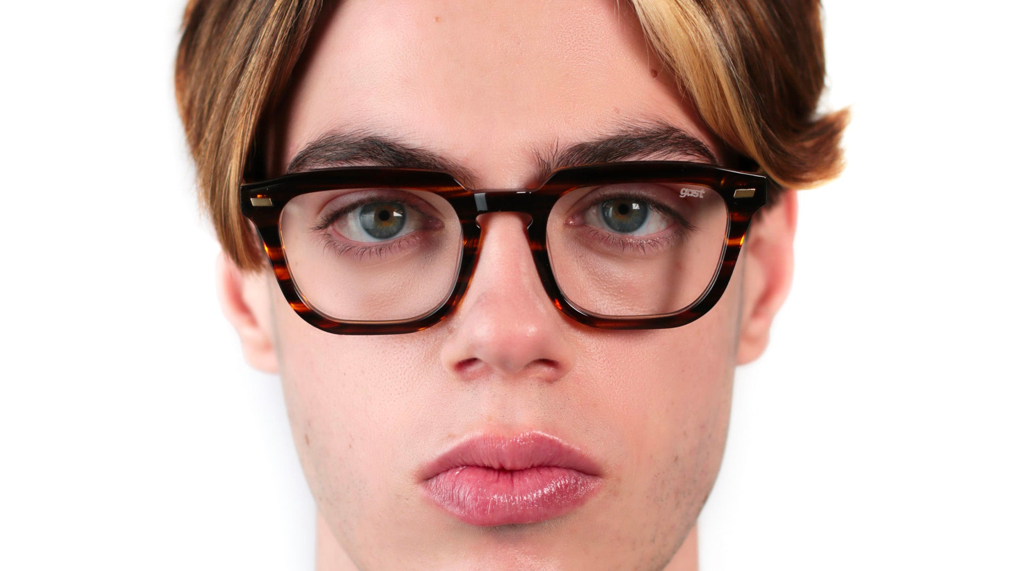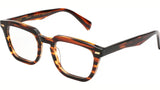 Occhiali da vista con montatura in acetato artigianale di colore duna e lenti demo. Materiale del telaio: acetato. Forma del telaio: quadrati. Cerniere metalliche a cinque barre e nucleo in filo personalizzato. Custodia rigida premium e panno per la pulizia in microfibra.