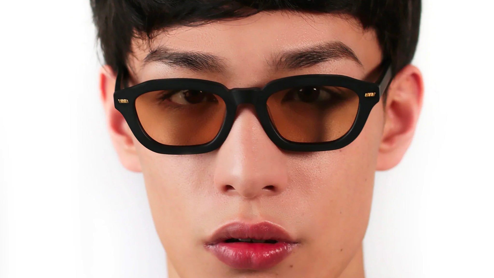 Occhiali da sole con montatura in acetato artigianale di colore nero opaco e lenti arenaria. Materiale del telaio: acetato. Forma del telaio: geometrici. Cerniere metalliche a cinque barre e nucleo in filo personalizzato. Custodia rigida premium e panno per la pulizia in microfibra.