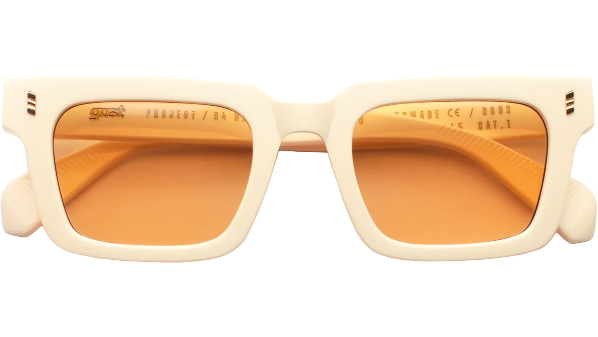 Occhiali da sole con montatura in acetato artigianale di colore bianco crema e lenti bianco crema. Materiale del telaio: acetato. Forma del telaio: rettangolari. Cerniere metalliche a cinque barre e nucleo in filo personalizzato. Custodia rigida premium e panno per la pulizia in microfibra.