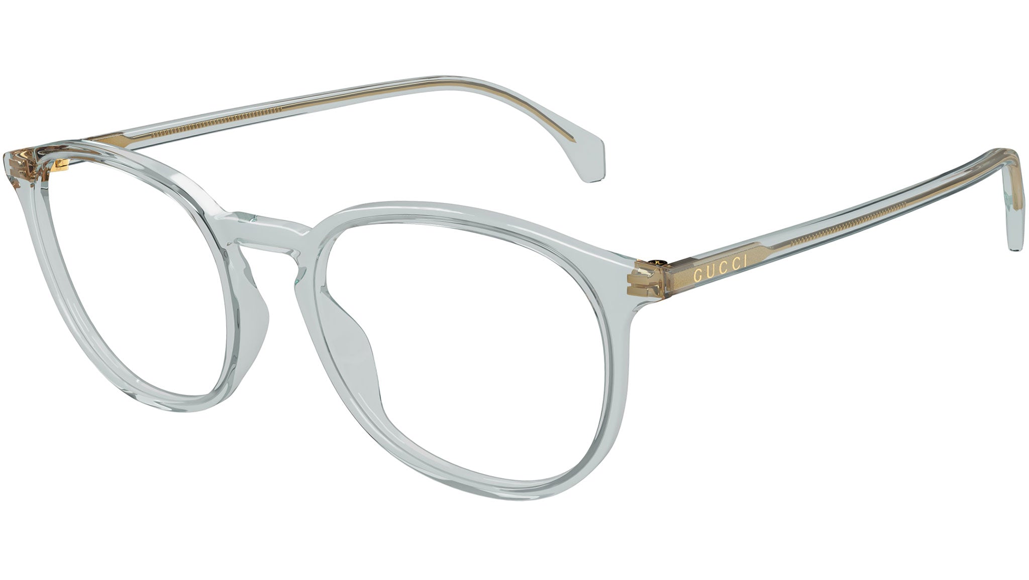 Occhiali da vista Gucci modello GG0551O linea GG Logo in acetato forma pantos codice colore 013 blu denim trasparente lucido con aste in azzurro e lenti demo. Rivenditore autorizzato Gucci online. Gli occhiali vengono consegnati con custodia e accessori originali e sono coperti dalla garanzia ufficiale di 12 mesi del produttore.