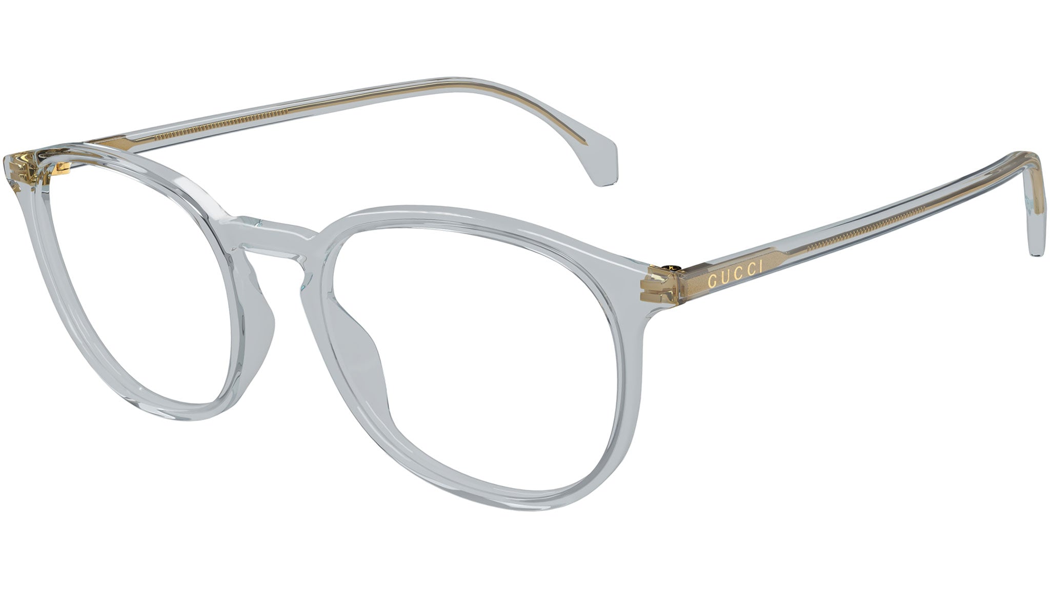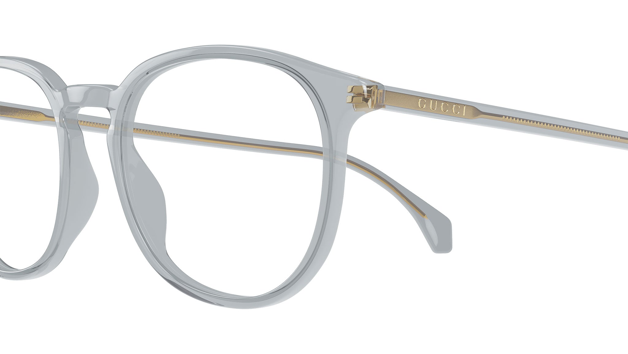 Occhiali da vista Gucci modello GG0551O linea GG Logo in acetato forma pantos codice colore 014 grigio chiaro lattiginoso lucido con aste in grigio e lenti demo. Rivenditore autorizzato Gucci online. Gli occhiali vengono consegnati con custodia e accessori originali e sono coperti dalla garanzia ufficiale di 12 mesi del produttore.