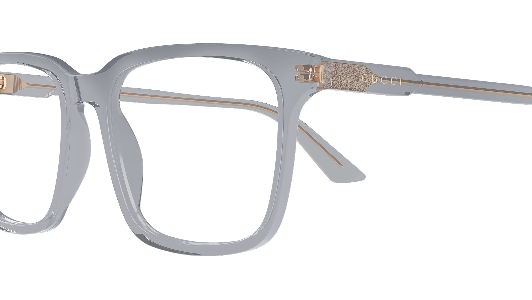 Occhiali da vista Gucci modello GG1120O linea GG Logo in acetato forma rettangolare codice colore 005 blu denim trasparente lucido con aste in azzurro e lenti demo. Rivenditore autorizzato Gucci online. Gli occhiali vengono consegnati con custodia e accessori originali e sono coperti dalla garanzia ufficiale di 12 mesi del produttore.