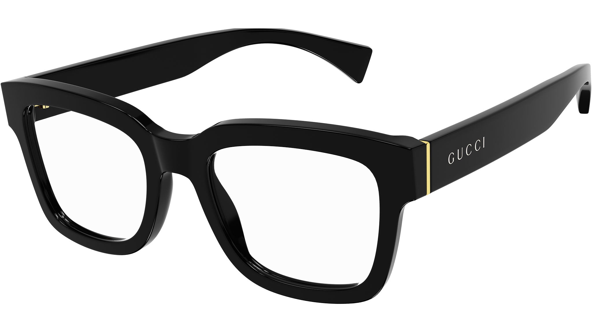 Occhiali da vista Gucci linea Gucci Logo modello GG1138O variante colore 001 nero lucido con astine color nero.