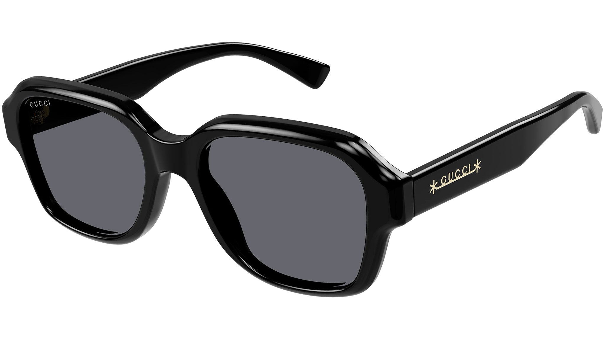 Occhiali da sole Gucci Logo modello GG1174S variante colore 001 nero lucido tinta unita con lenti color grigio fumo tinta unita.