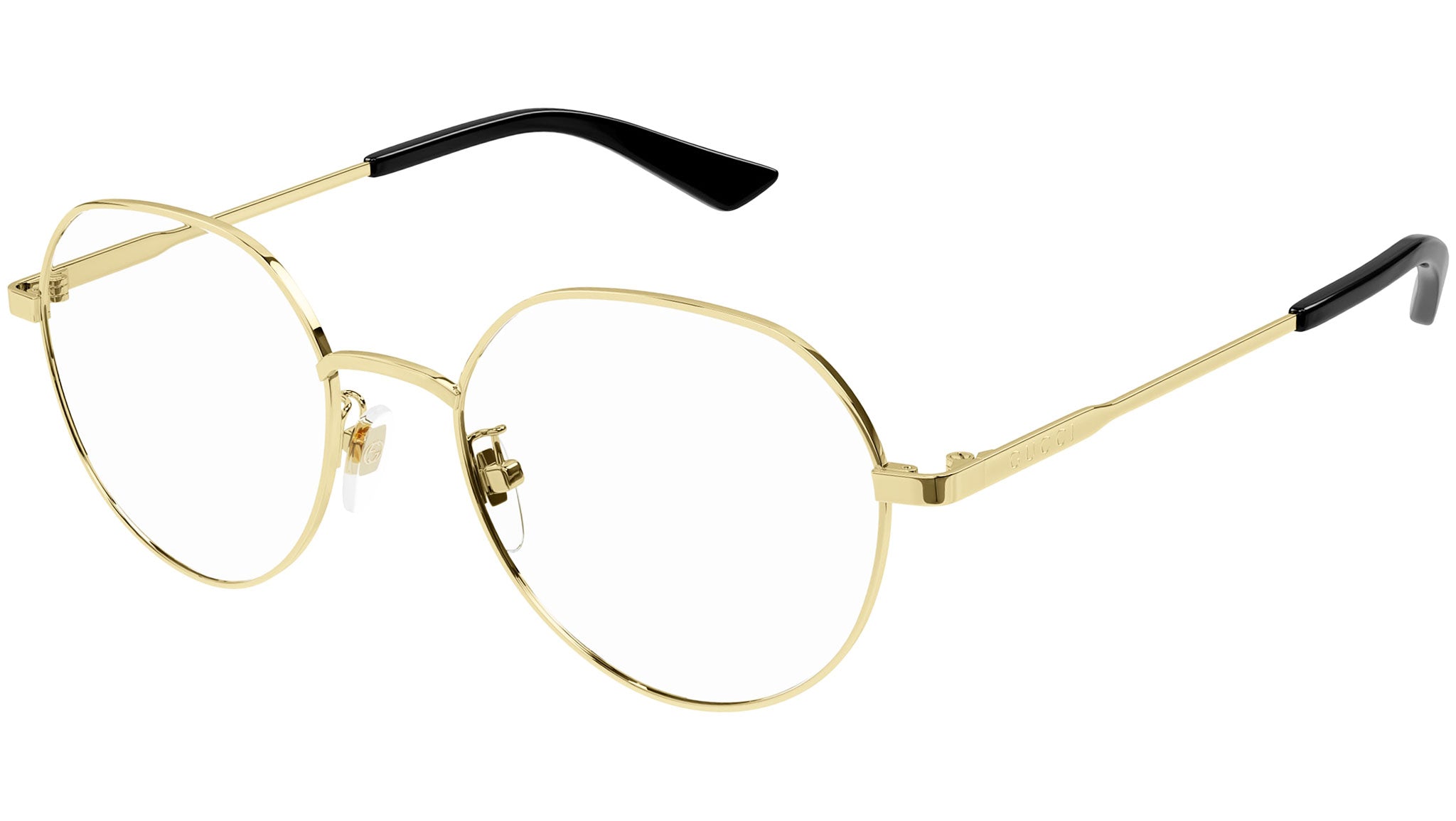 Occhiali da vista Gucci Logo modello GG1232OA variante colore 002 oro endura lucido con astine color oro.