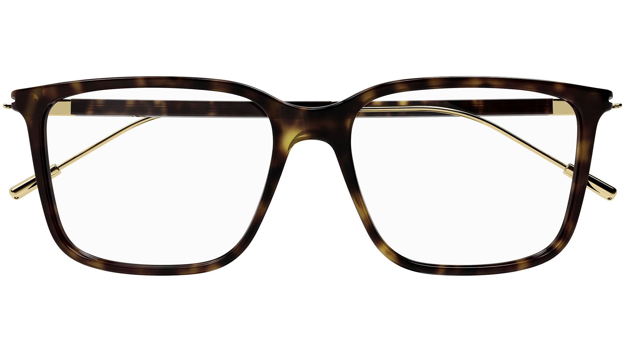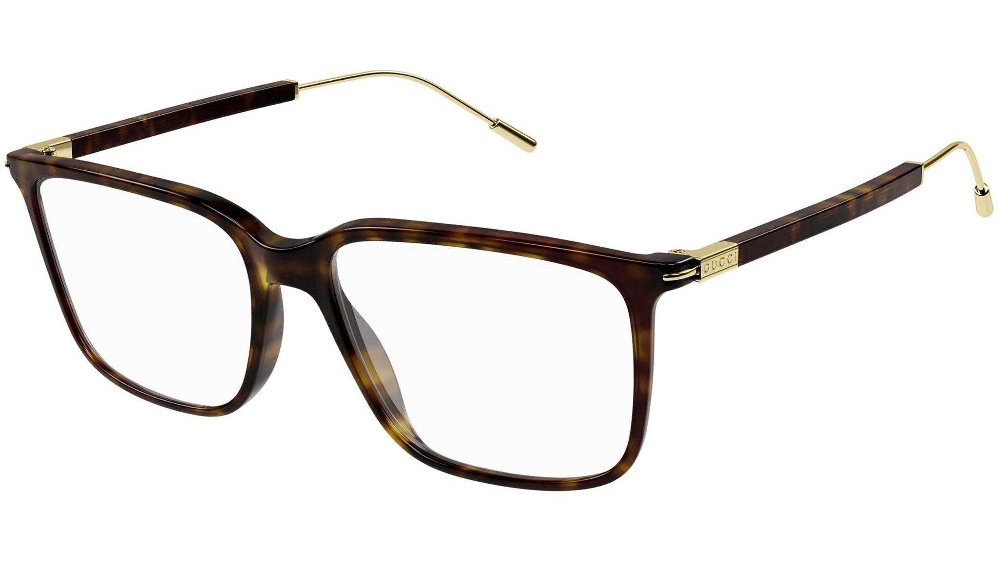 Occhiali da vista linea Gucci Logo modello GG1273O variante colore 002 tartaruga scuro lucido con astine color oro.