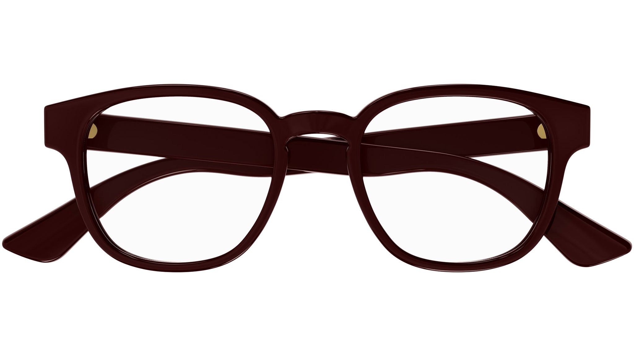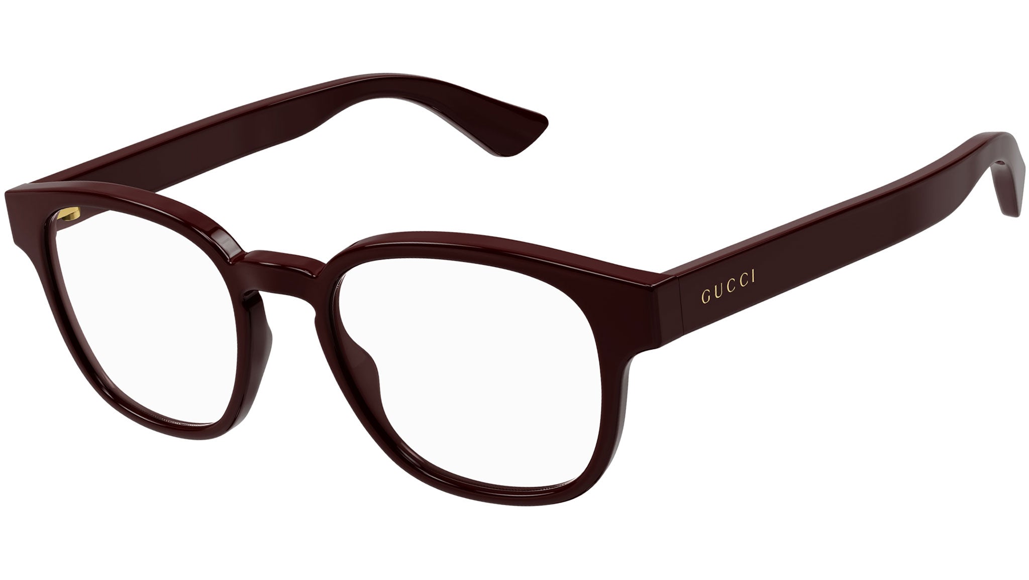 Occhiali da vista Gucci linea Gucci Logo modello GG1343O 006 in iniettato rosso tinta unita lucido con aste color rosso e lenti demo.