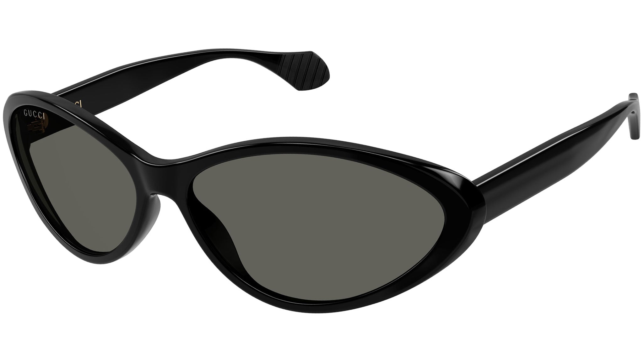 Occhiali da sole Gucci linea Fashion Inspired modello GG1377S variante colore 002 nero lucido tinta unita con lenti color nero.