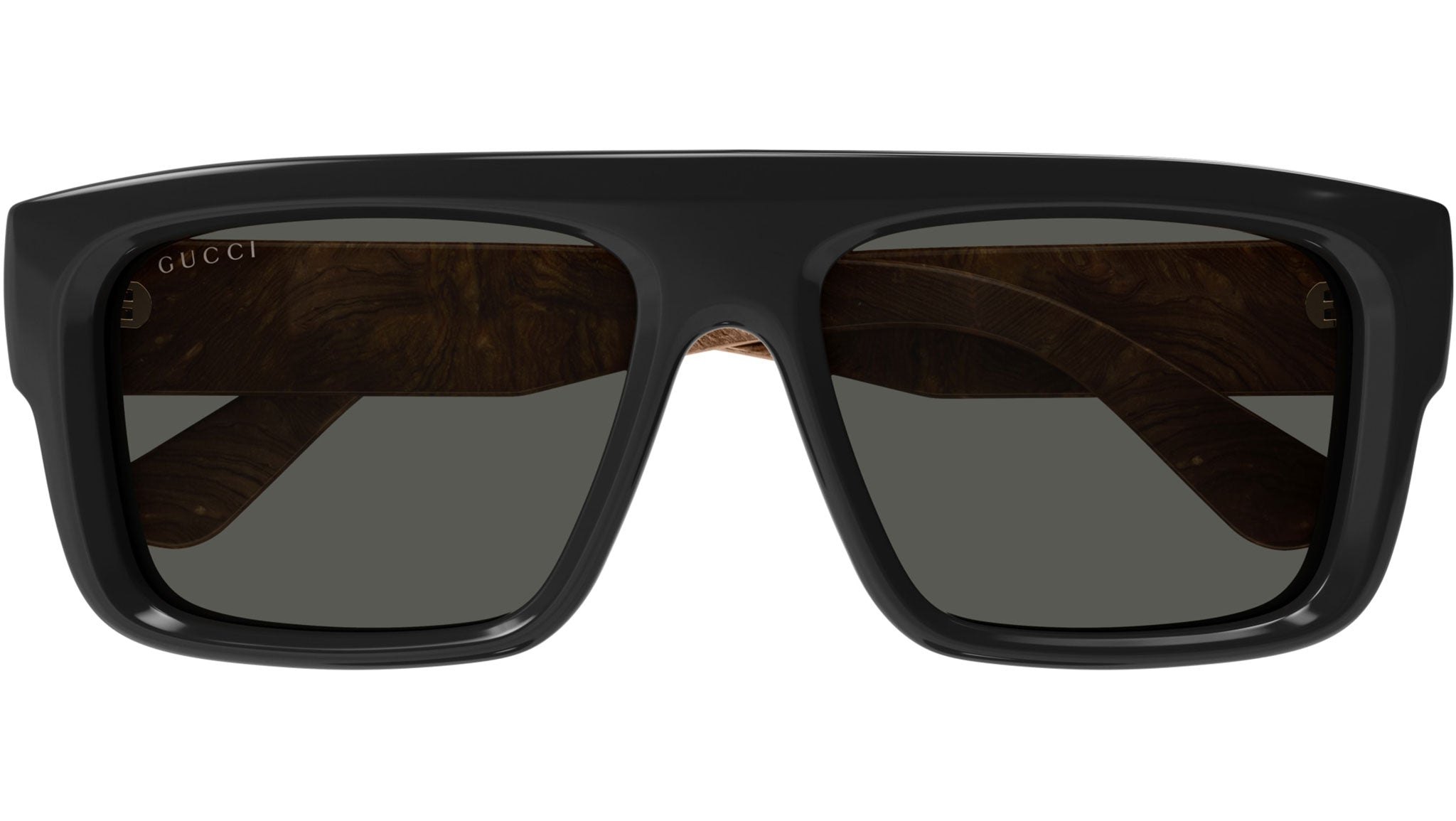 Occhiali da sole Gucci linea Rivets modello GG1461S 001 in acetato riciclato nero lucido con aste color nero e lenti grigio tinta unita.