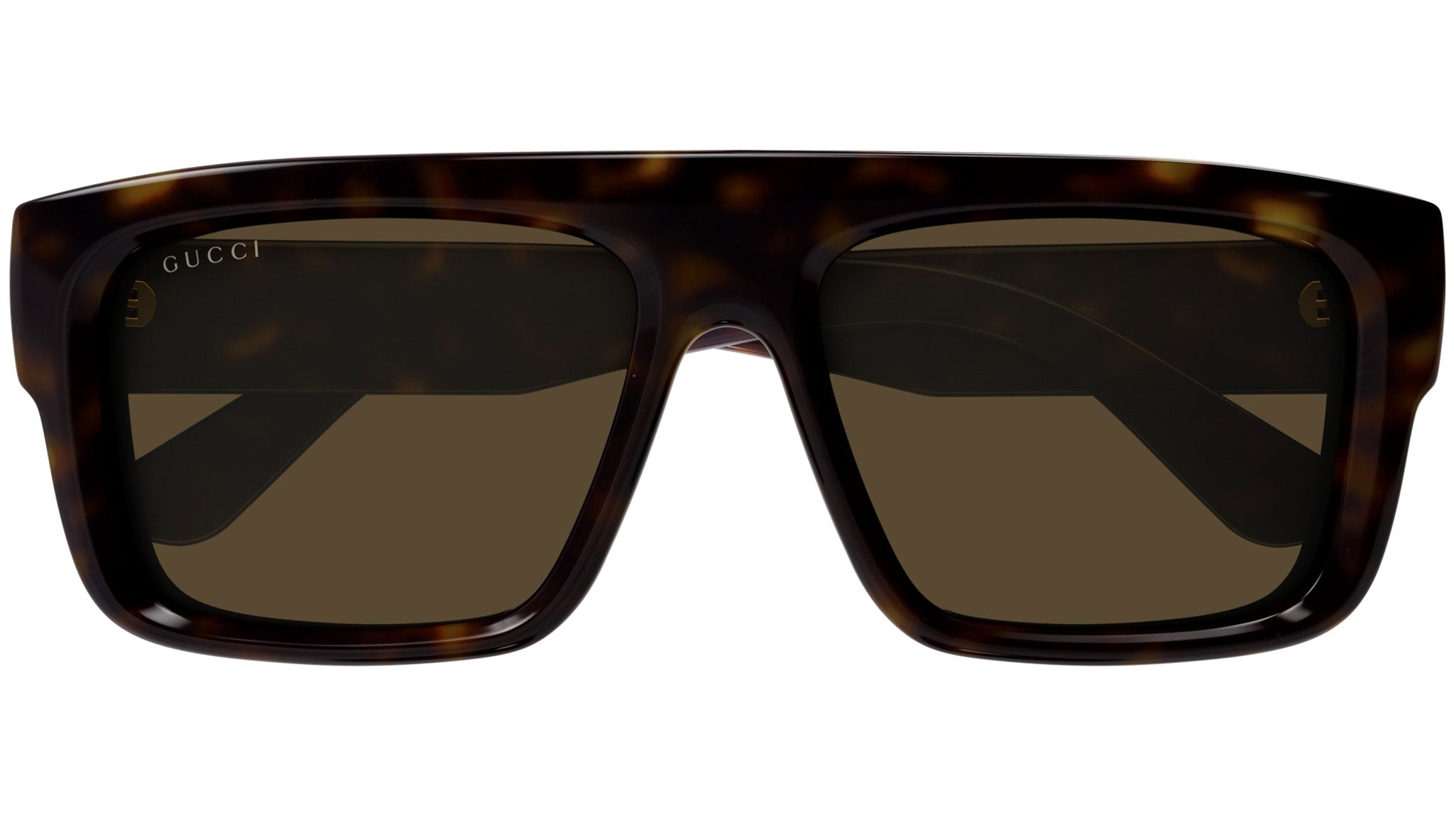 Occhiali da sole Gucci linea Rivets modello GG1461S 002 in acetato riciclato avana lucido classico con aste color tartaruga e lenti marrone tinta unita.