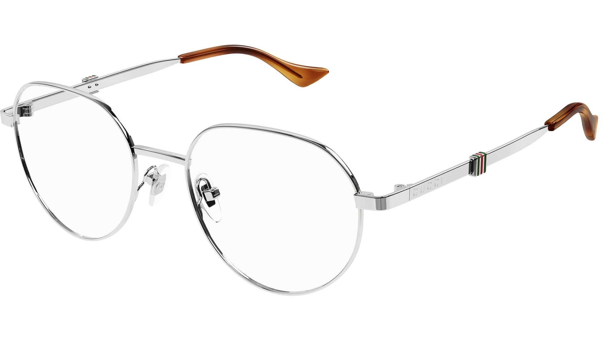 Occhiali da vista Gucci modello GG1496O linea Web in metallo forma pantos codice colore 003 argento lucido con aste in argento e lenti demo. Rivenditore autorizzato Gucci online. Gli occhiali vengono consegnati con custodia e accessori originali e sono coperti dalla garanzia ufficiale di 12 mesi del produttore.