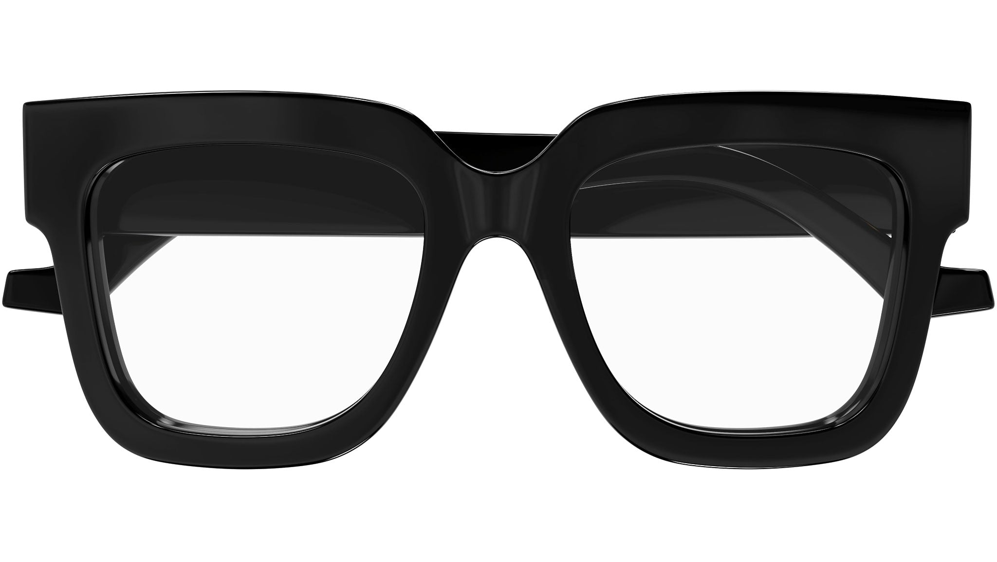Occhiali da vista Gucci GG Logo modello GG1549O rettangolari in acetato riciclato codice colore 001 nero lucido con astine nero e lenti demo.