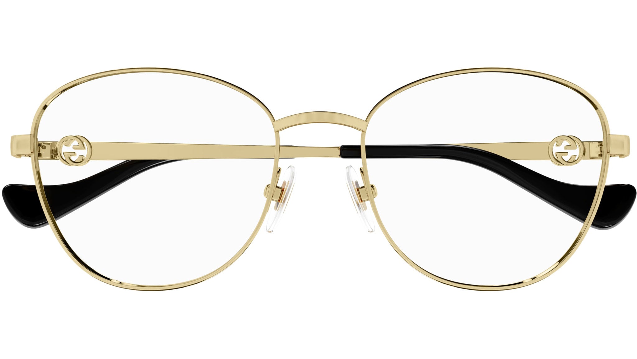 Occhiali da vista Gucci modello GG1601O linea GG Logo in metallo forma pantos codice colore 001 oro endura lucido con aste in oro e lenti demo. Rivenditore autorizzato Gucci online. Gli occhiali vengono consegnati con custodia e accessori originali e sono coperti dalla garanzia ufficiale di 12 mesi del produttore.