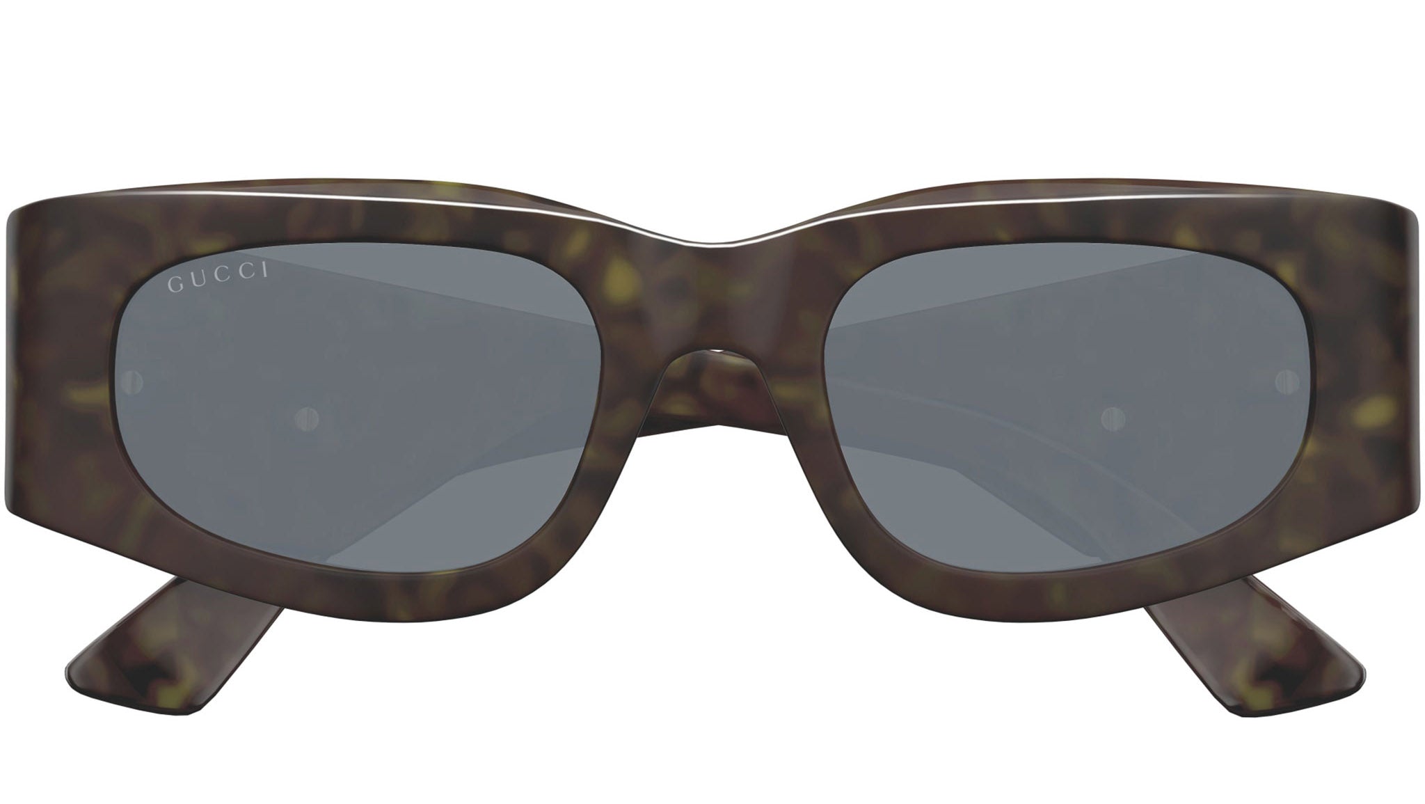 Occhiali da sole Gucci modello GG1664S linea GG Logo in acetato riciclato forma rettangolare codice colore 003 avana scuro lucido vintage con aste tartaruga e lenti grigio chiaro tinta unita. Rivenditore autorizzato Gucci online. Gli occhiali vengono consegnati con custodia e accessori originali e sono coperti dalla garanzia ufficiale di 12 mesi del produttore.