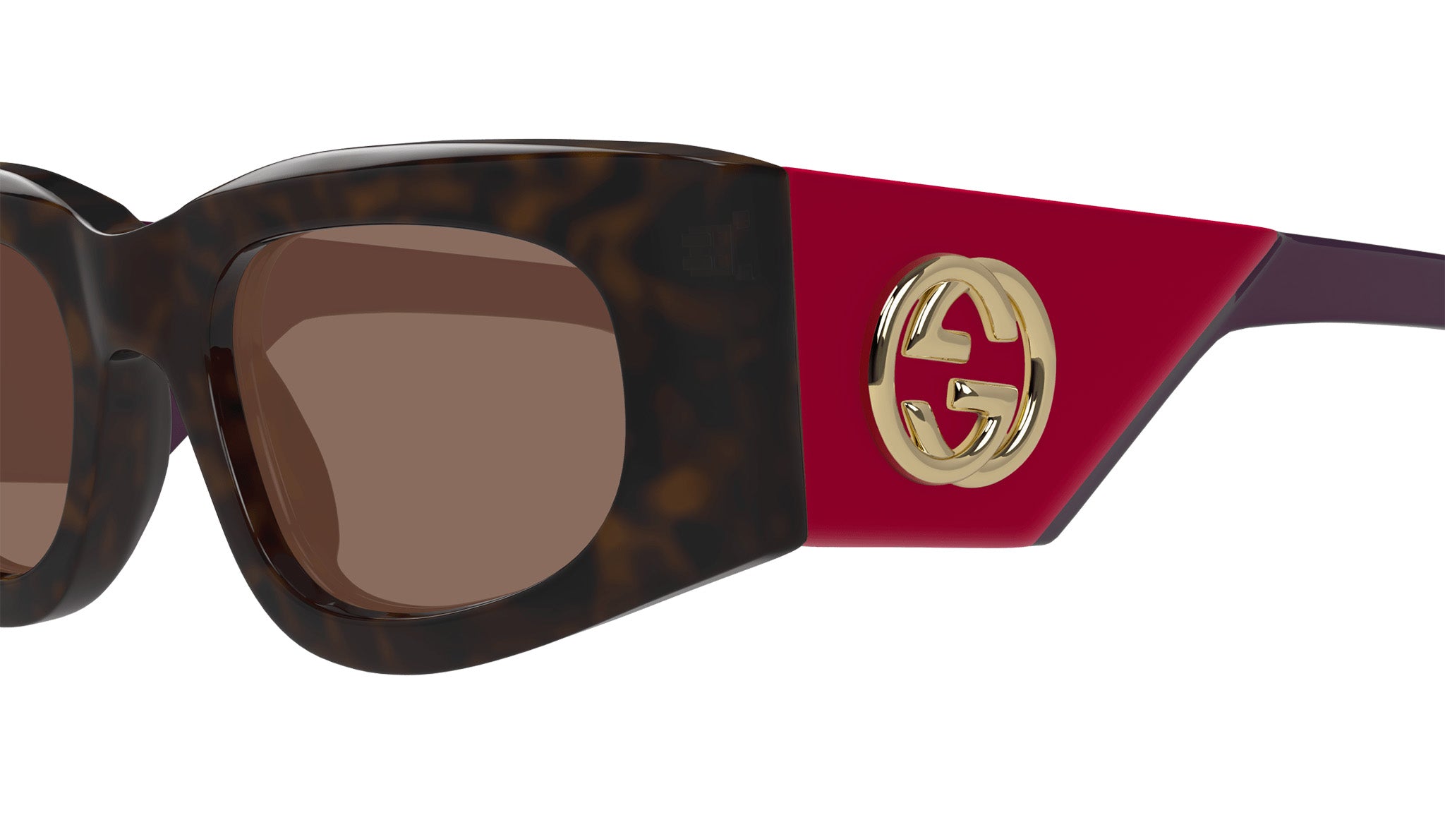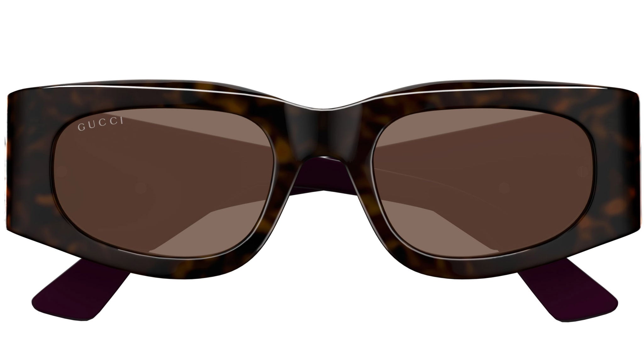 Occhiali da sole Gucci modello GG1664S linea GG Logo in acetato riciclato forma rettangolare codice colore 004 tartaruga scuro lucido con aste viola e lenti marrone tinta unita. Rivenditore autorizzato Gucci online. Gli occhiali vengono consegnati con custodia e accessori originali e sono coperti dalla garanzia ufficiale di 12 mesi del produttore.