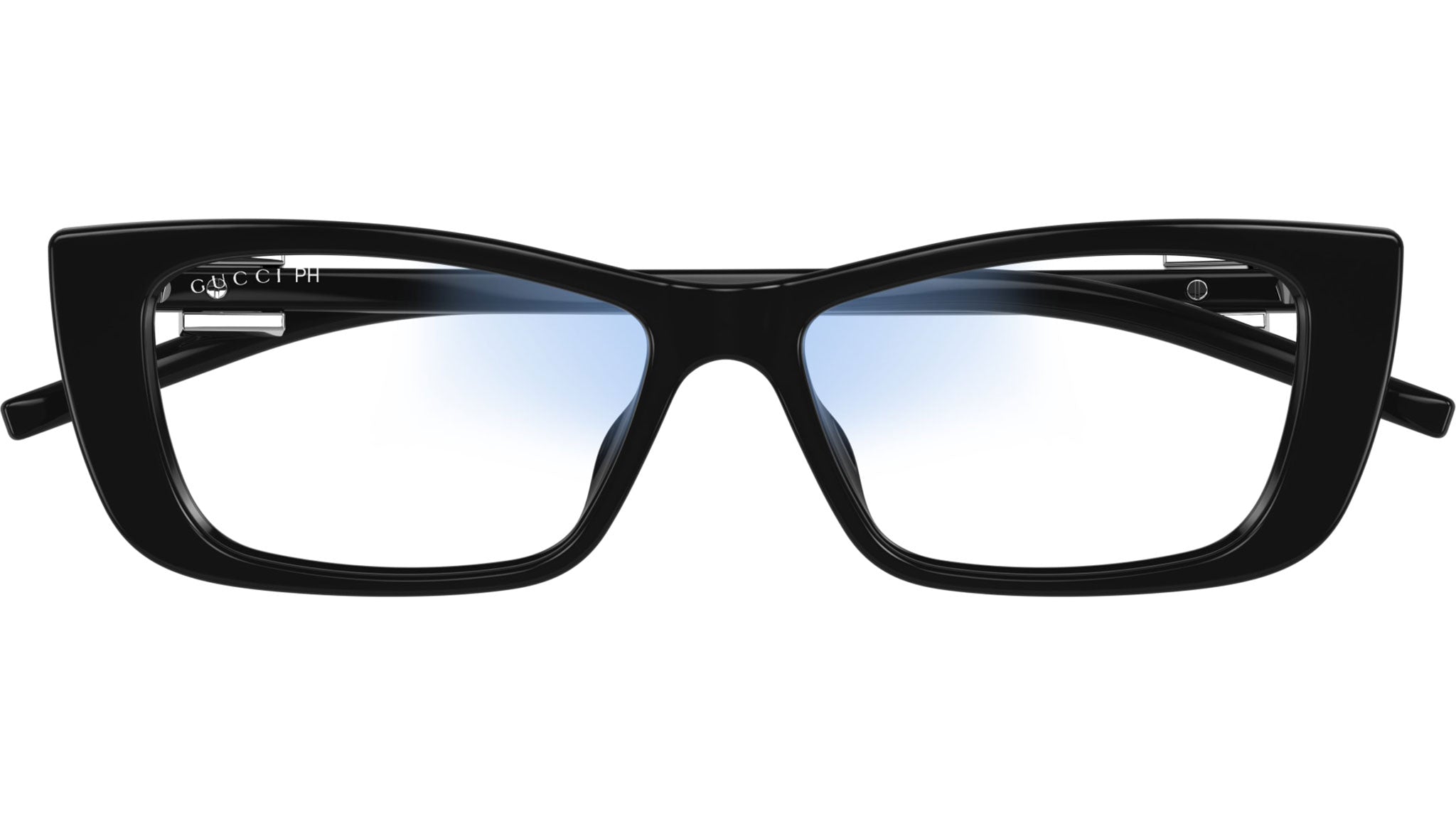 Occhiali da sole Gucci modello GG1681S linea GG Logo in iniettato forma a gatto codice colore 007 nero lucido con aste nero e lenti trasparente fotocromatico a grigio + riduttore luce blu AR. Rivenditore autorizzato Gucci online. Gli occhiali vengono consegnati con custodia e accessori originali e sono coperti dalla garanzia ufficiale di 12 mesi del produttore.
