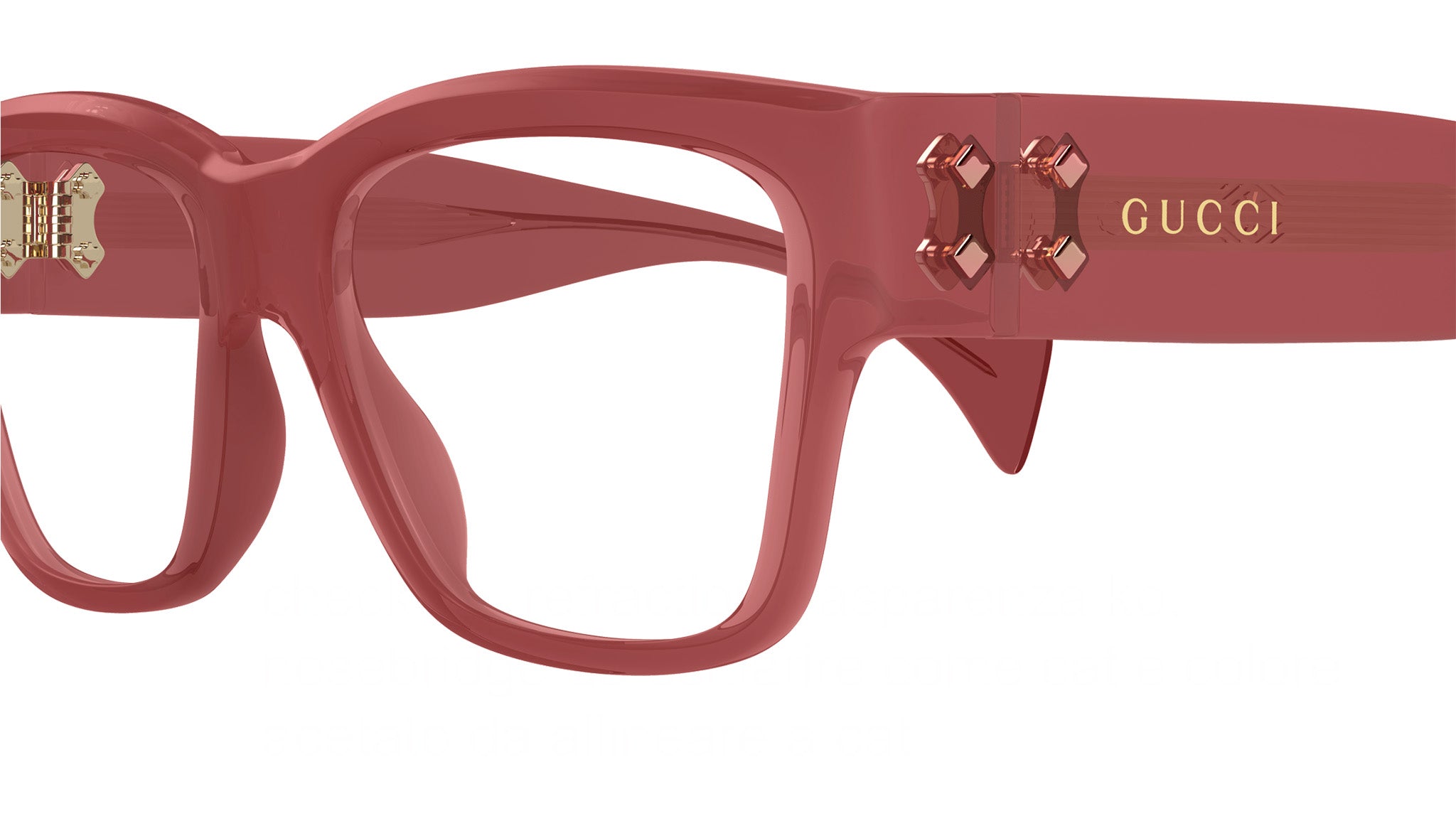 Occhiali da vista Gucci modello GG1705O linea Rivets in acetato riciclato forma rettangolare codice colore 003 rosa opalino lucido con aste in rosa e lenti demo. Rivenditore autorizzato Gucci online. Gli occhiali vengono consegnati con custodia e accessori originali e sono coperti dalla garanzia ufficiale di 12 mesi del produttore.