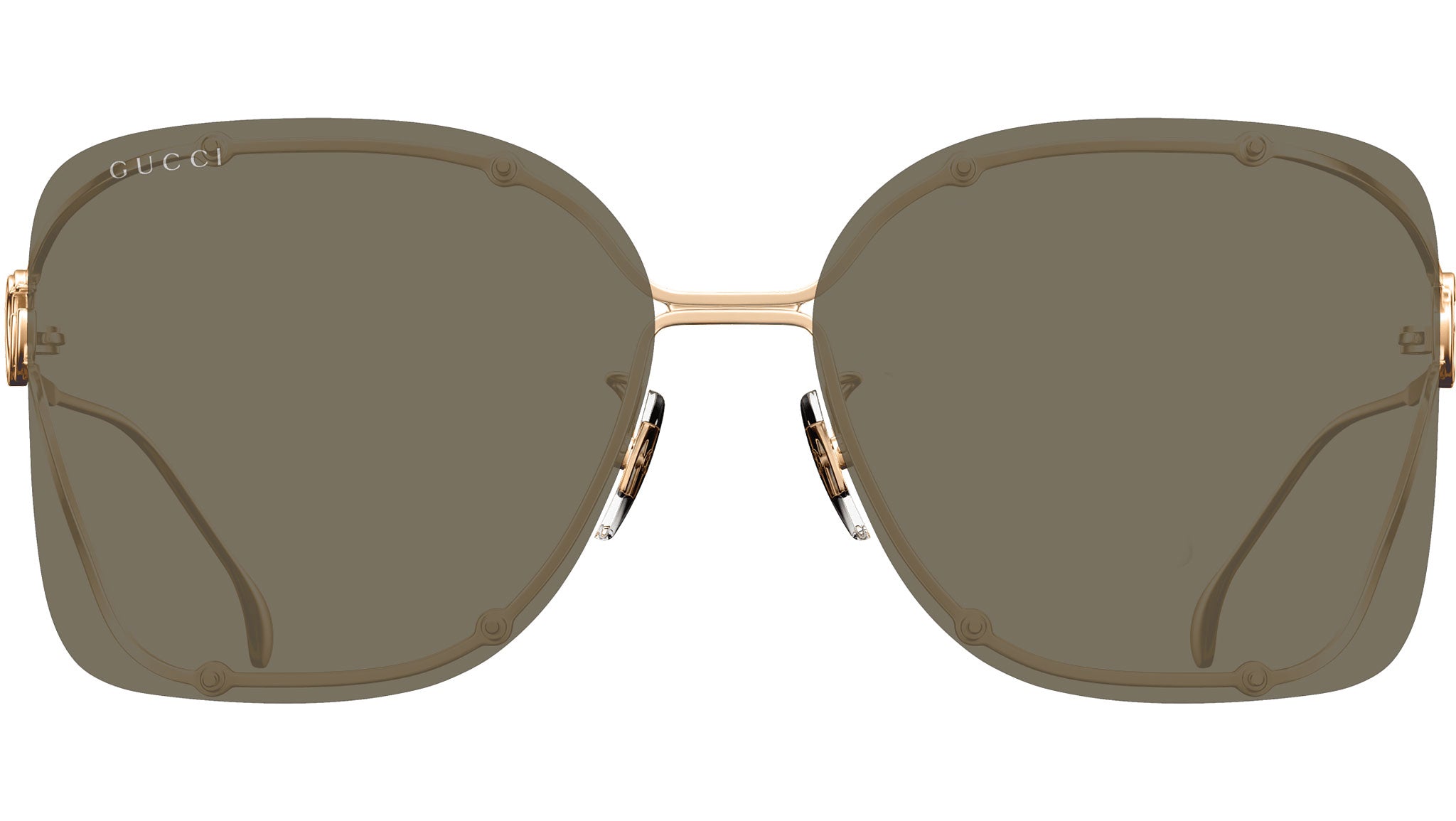 Occhiali da sole Gucci modello GG1713SA linea Fork in metallo forma rettangolare codice colore 002 oro rosa lucido con aste oro e lenti marrone tinta unita. Rivenditore autorizzato Gucci online. Gli occhiali vengono consegnati con custodia e accessori originali e sono coperti dalla garanzia ufficiale di 12 mesi del produttore.