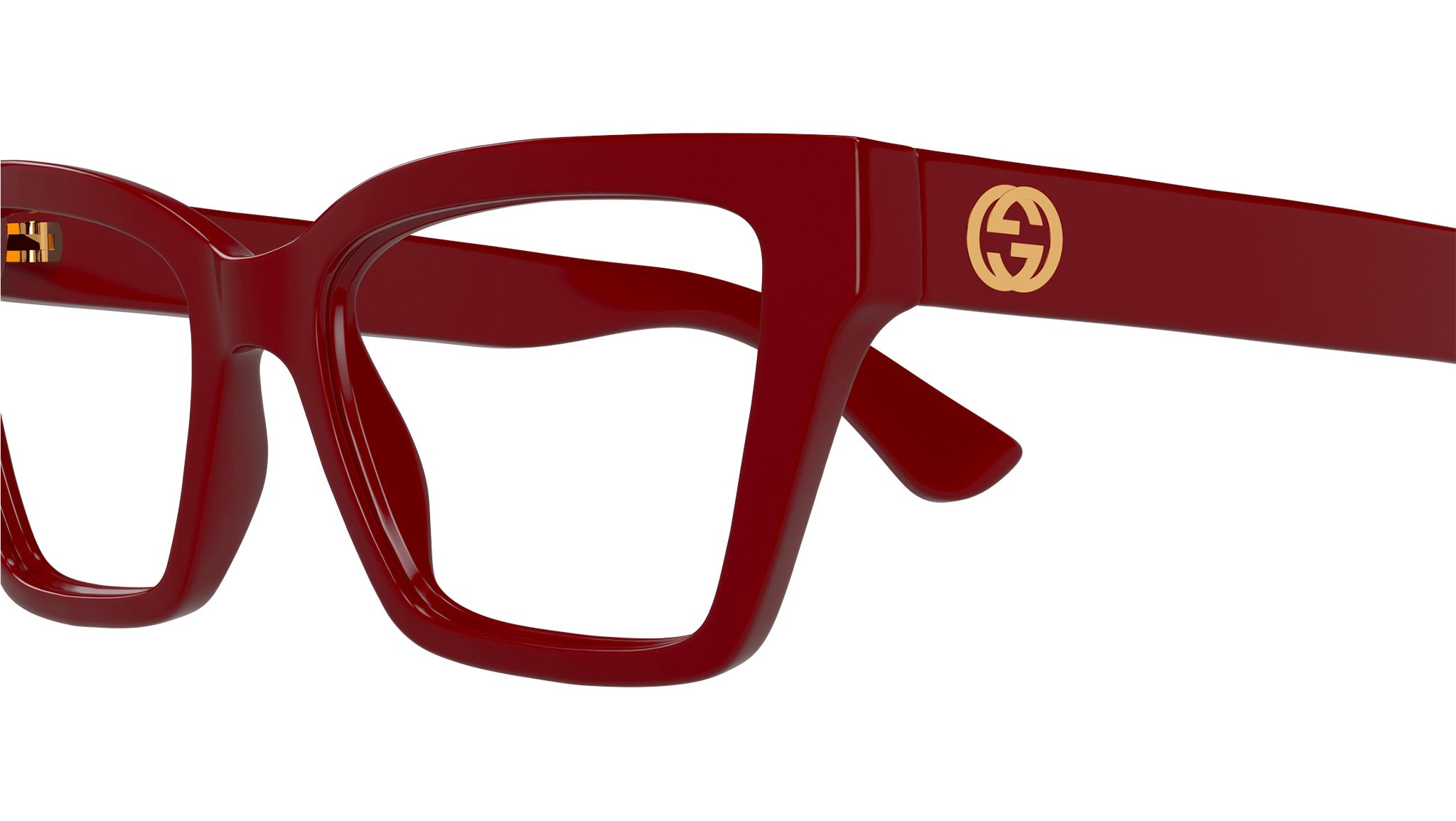 Occhiali da vista Gucci modello GG1715O linea GG Logo in iniettato forma a gatto codice colore 003 bordeaux tinta unita lucido con aste in rosso borgogna e lenti demo. Rivenditore autorizzato Gucci online. Gli occhiali vengono consegnati con custodia e accessori originali e sono coperti dalla garanzia ufficiale di 12 mesi del produttore.