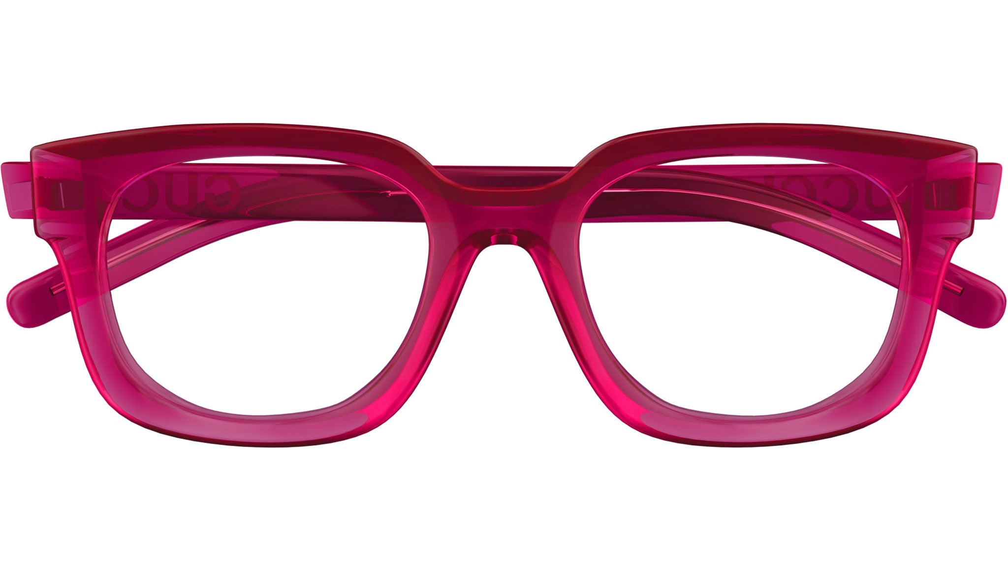 Occhiali da vista Gucci modello GG1721O linea Lettering in iniettato forma rettangolare codice colore 004 ciclamino scuro trasparente lucido - bordo anteriore all over rosa trasparente lucido con aste in rosso e lenti demo. Rivenditore autorizzato Gucci online. Gli occhiali vengono consegnati con custodia e accessori originali e sono coperti dalla garanzia ufficiale di 12 mesi del produttore.