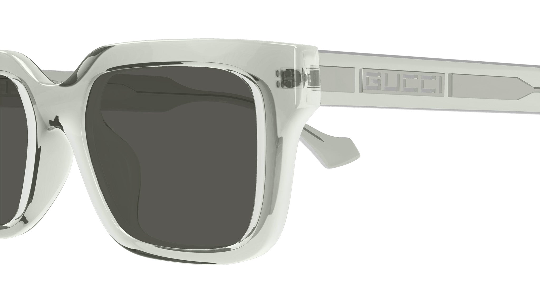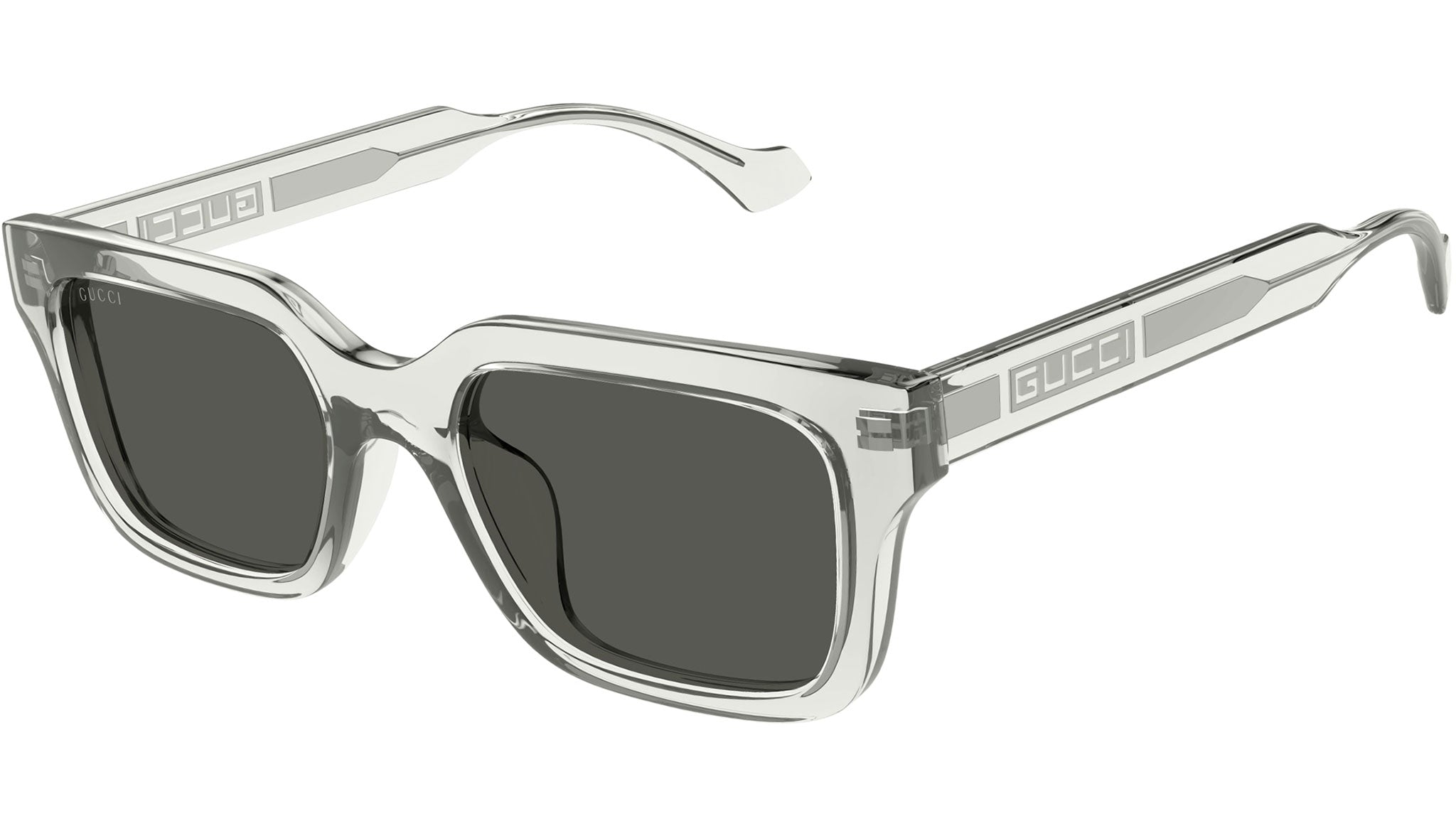 Occhiali da sole Gucci modello GG1732SK linea Lettering in iniettato forma rettangolare codice colore 004 grigio nuvola trasparente lucido con aste grigio e lenti grigio tinta unita. Rivenditore autorizzato Gucci online. Gli occhiali vengono consegnati con custodia e accessori originali e sono coperti dalla garanzia ufficiale di 12 mesi del produttore.