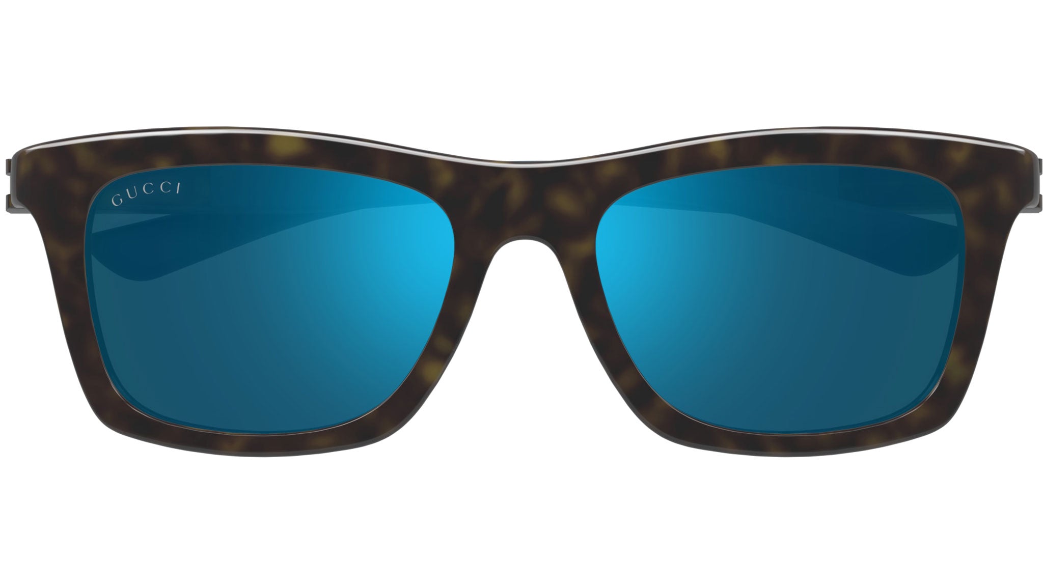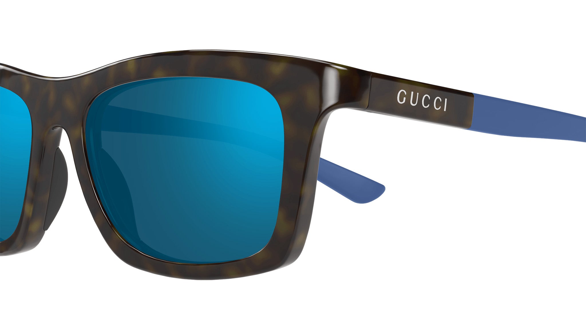 Occhiali da sole Gucci modello GG1735S linea Lettering in iniettato forma rettangolare codice colore 003 tartaruga scuro lucido con aste blu e lenti grigio solido + ml blu. Rivenditore autorizzato Gucci online. Gli occhiali vengono consegnati con custodia e accessori originali e sono coperti dalla garanzia ufficiale di 12 mesi del produttore.