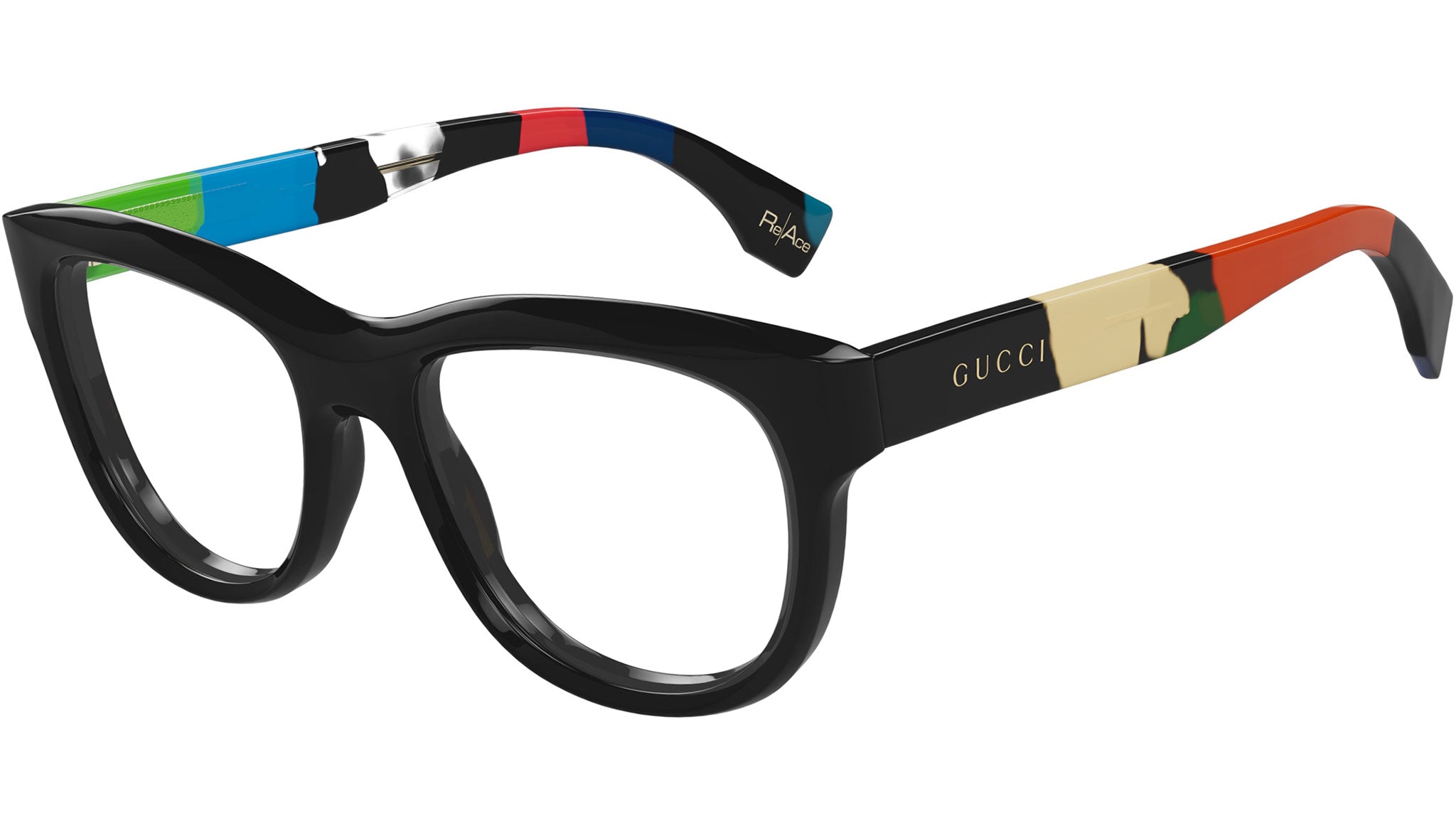 Occhiali da vista Gucci modello GG1751O linea Lettering in acetato riciclato forma rettangolare codice colore 002 nero lucido tinta unita con aste in nero e lenti demo. Rivenditore autorizzato Gucci online. Gli occhiali vengono consegnati con custodia e accessori originali e sono coperti dalla garanzia ufficiale di 12 mesi del produttore.