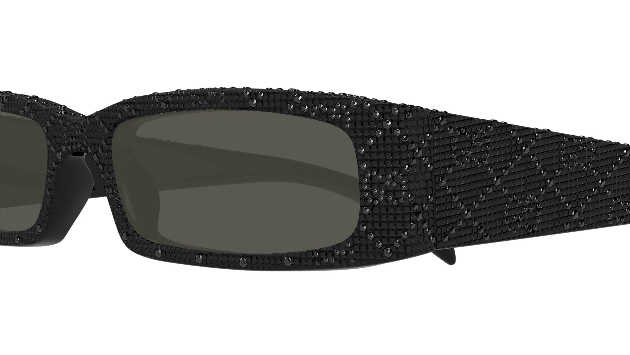 Occhiali da sole Gucci modello GG1780S linea Fashion in acetato riciclato forma rettangolare codice colore 002 nero lucido con strass ematite jet all over e nero lucido con aste nero e lenti grigio tinta unita. Rivenditore autorizzato Gucci online. Gli occhiali vengono consegnati con custodia e accessori originali e sono coperti dalla garanzia ufficiale di 12 mesi del produttore.