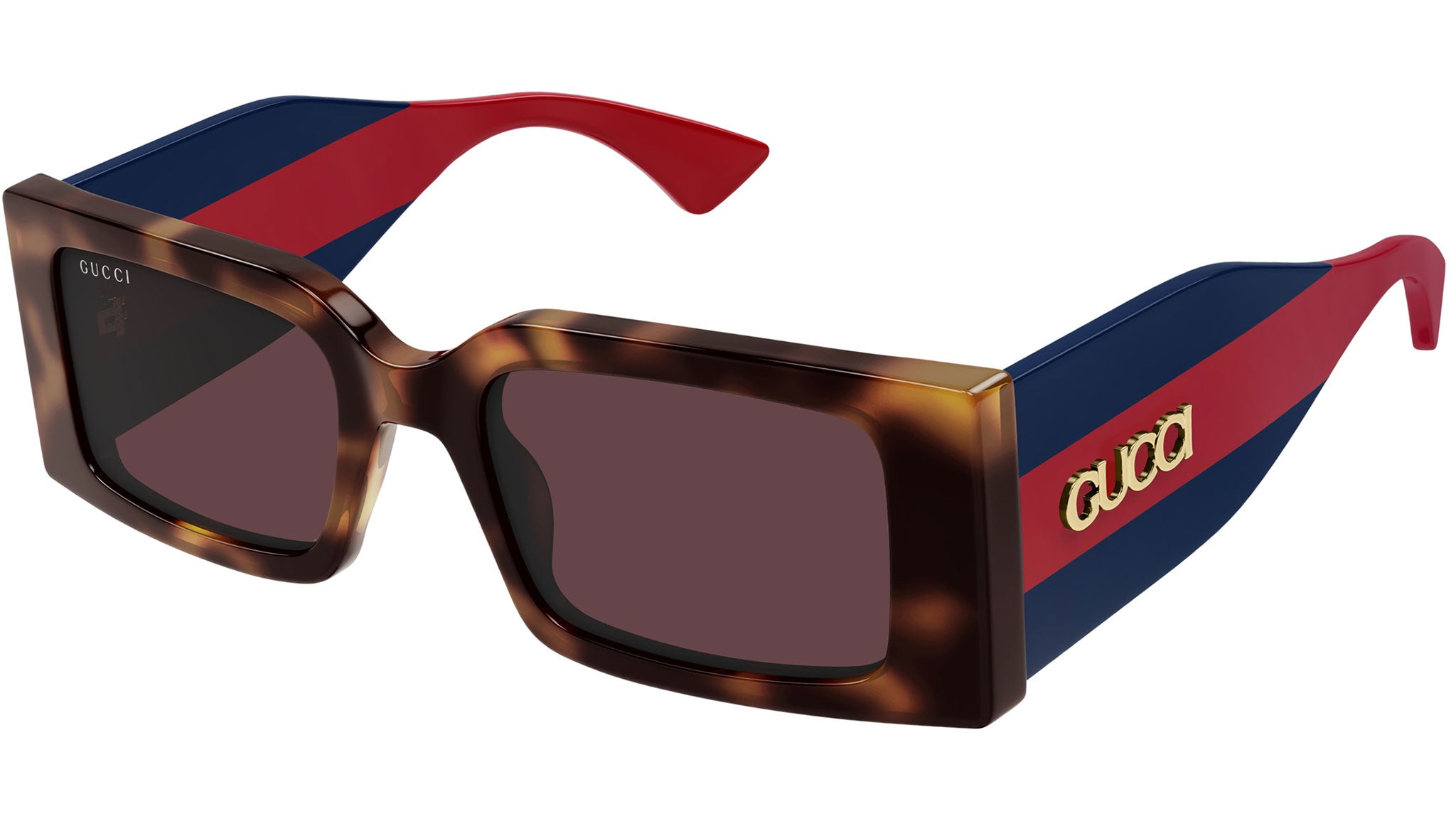 Occhiali da sole Gucci GG1860S 002 donna con montatura rettangolare in acetato riciclato marrone avana e lenti borgogna tinta unita. Linea: Web. Codice modello: GG1860S. Codice colore: 002. Made in Japan. Rivenditore autorizzato Gucci online. Gli occhiali vengono consegnati con custodia e accessori originali e sono coperti dalla garanzia ufficiale di 12 mesi del produttore.