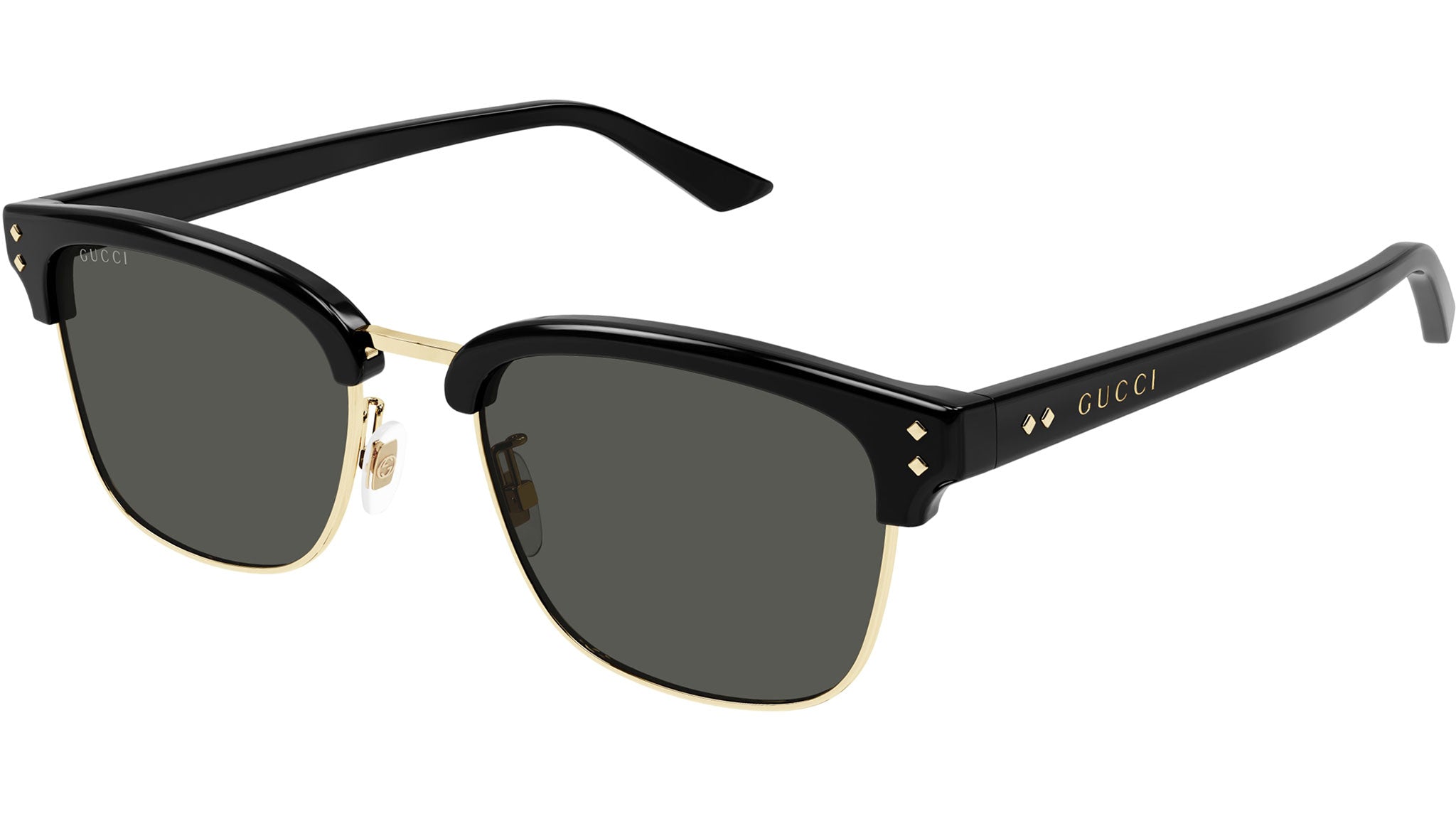 Occhiali da sole Gucci GG1897SK 001 uomo con montatura rettangolare in acetato riciclato nero cerchi oro e lenti grigio tinta unita. Linea: Rivets. Codice modello: GG1897SK. Codice colore: 001. Made in Italy. Rivenditore autorizzato Gucci online. Gli occhiali vengono consegnati con custodia e accessori originali e sono coperti dalla garanzia ufficiale di 12 mesi del produttore.