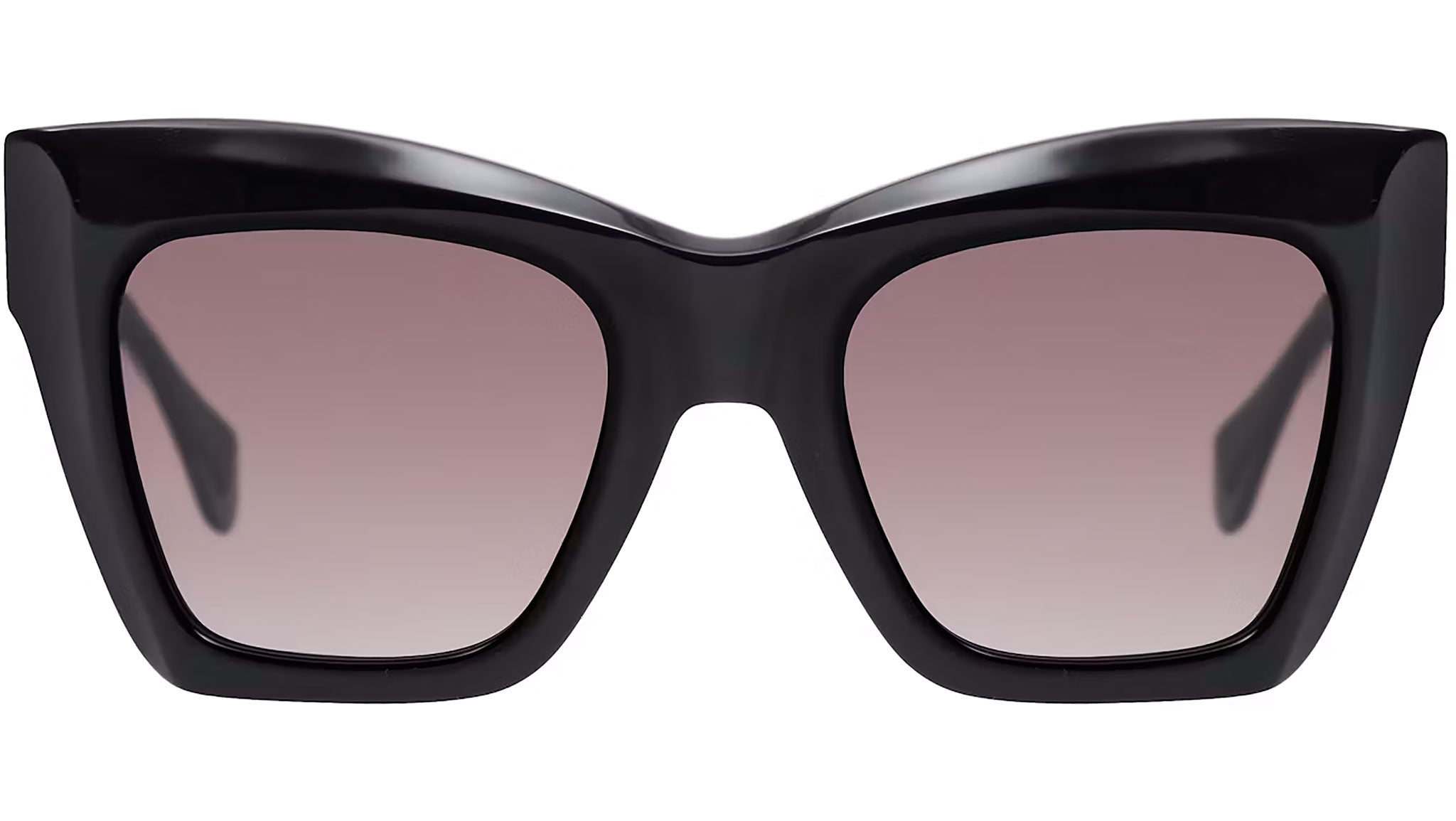 Occhiali da sole Gigi Studios modello 6806 Gioia codice colore 1 in nero. Un occhiale classico di forma cat eye full rim in acetato con lenti marrone sfumato. Il marchio garantisce la massima qualità costruttiva, grazie alla meticolosa selezione dei materiali, in collaborazione con i migliori fornitori italiani, tedeschi e giapponesi. Gigi Studios offre un'esperienza visiva eccezionale con lenti CR-39, confortevoli e sicure, che assorbono efficacemente i raggi UVA e UVB.