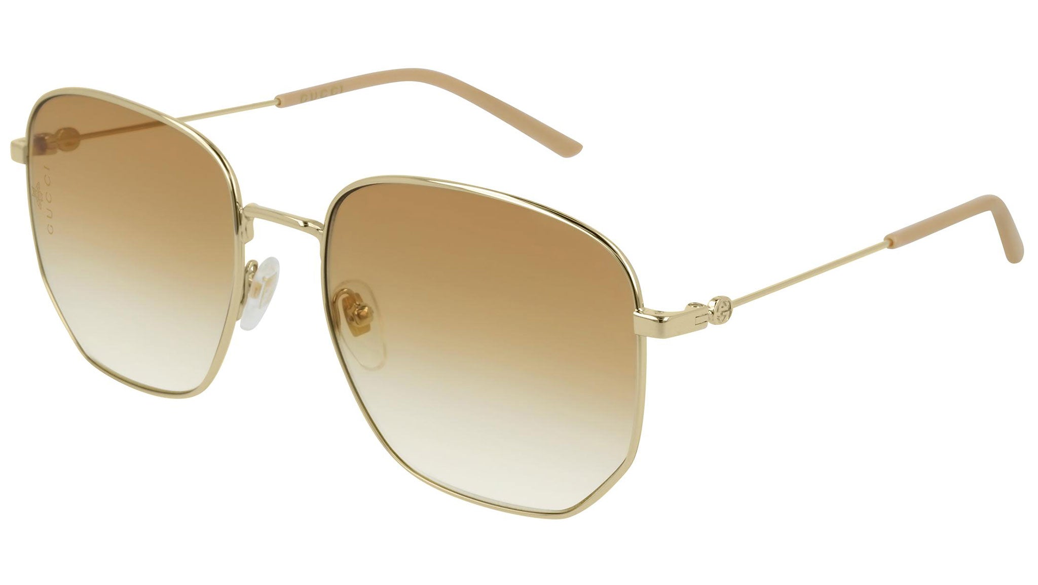 Occhiali da sole Gucci GG0396S 003 con montatura oro endura lucido e lenti color arancione sfumato. Eclettici, moderni, romantici: i prodotti Gucci Eyewear rappresentano la punta di diamante dell'artigianalità italiana, in quanto a qualità e attenzione ai dettagli. Innovativo, prestigioso e audace, Gucci sta reinventando un approccio alla moda totalmente moderno. Nella sua nuova vision creativa, la Maison ha redifinito il concetto di lusso per il 21mo secolo.