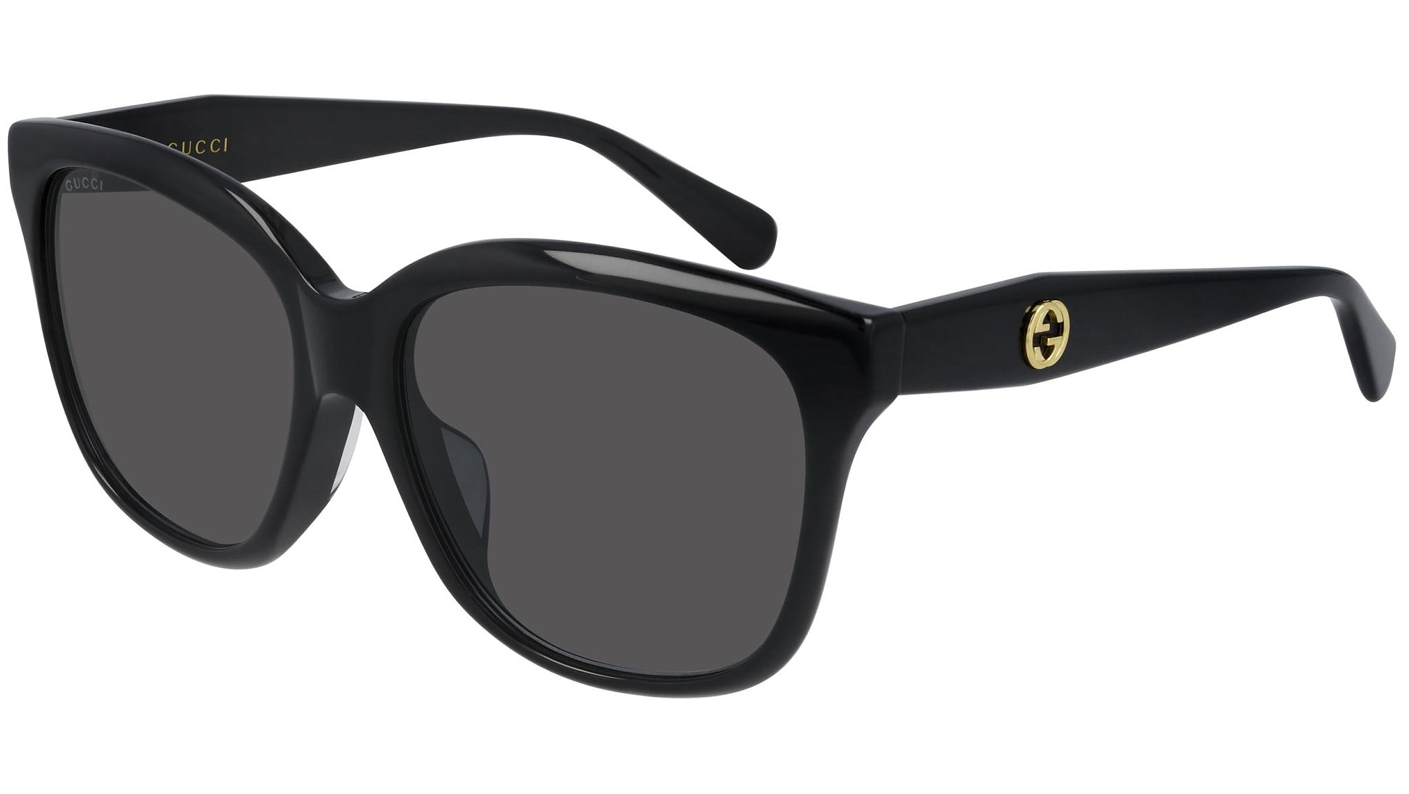 Occhiali da sole Gucci Logo modello GG0800SA 001, variante colore nero pieno lucido con lenti color grigio sfumato. Montature eclettiche e modelli intramontabili: la linea sole Gucci rappresenta la punta di diamante dell'artigianalità italiana. Massima qualità e attenzione ai dettagli, per un nuovo concetto di lusso: Gucci sta reinventando lo stile, con un approccio totalmente moderno alla moda, nella sua nuova vision più creativa, eclettica e audace.